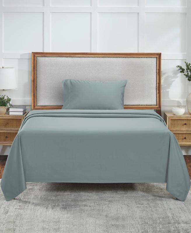 ·3-piece Twin cotton sheets set with 1 top sheet (66" W x 100" L), 1 fitted sheet (39" W x 75" L + 15" Deep Pocket) and 1 standard / queen pillowcase (21" W x 32" L). Special anti-skid extra-wide elastic that stays put all night long.