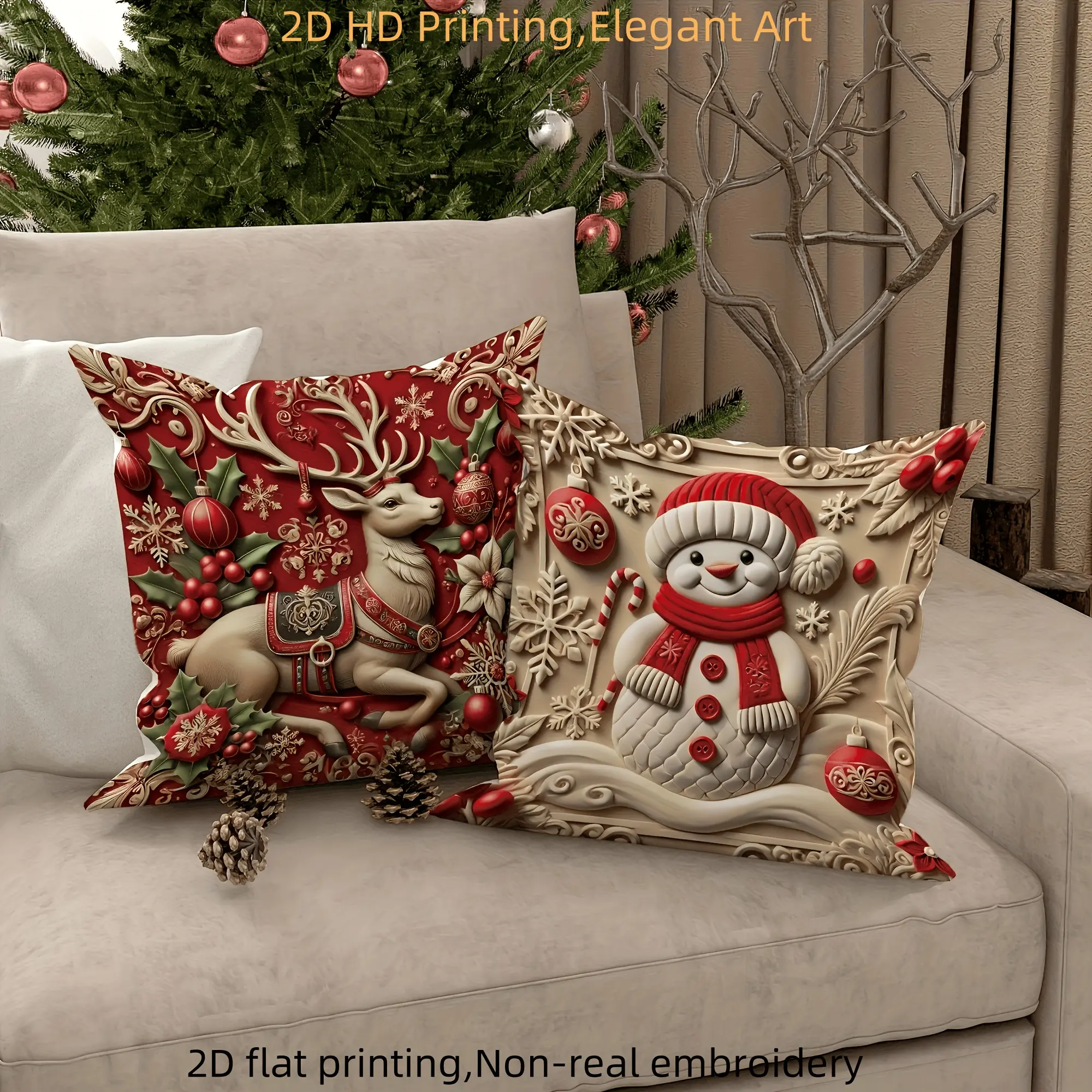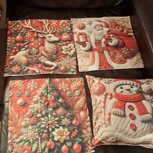 Luxury Christmas Pillow Covers 4pcs Santa Reindeer Snowman Floral Tree Red Gold Polyester 2D Print No Insert Festive Home Decor Living Room Holiday Accessories Sofa Cushion Cover