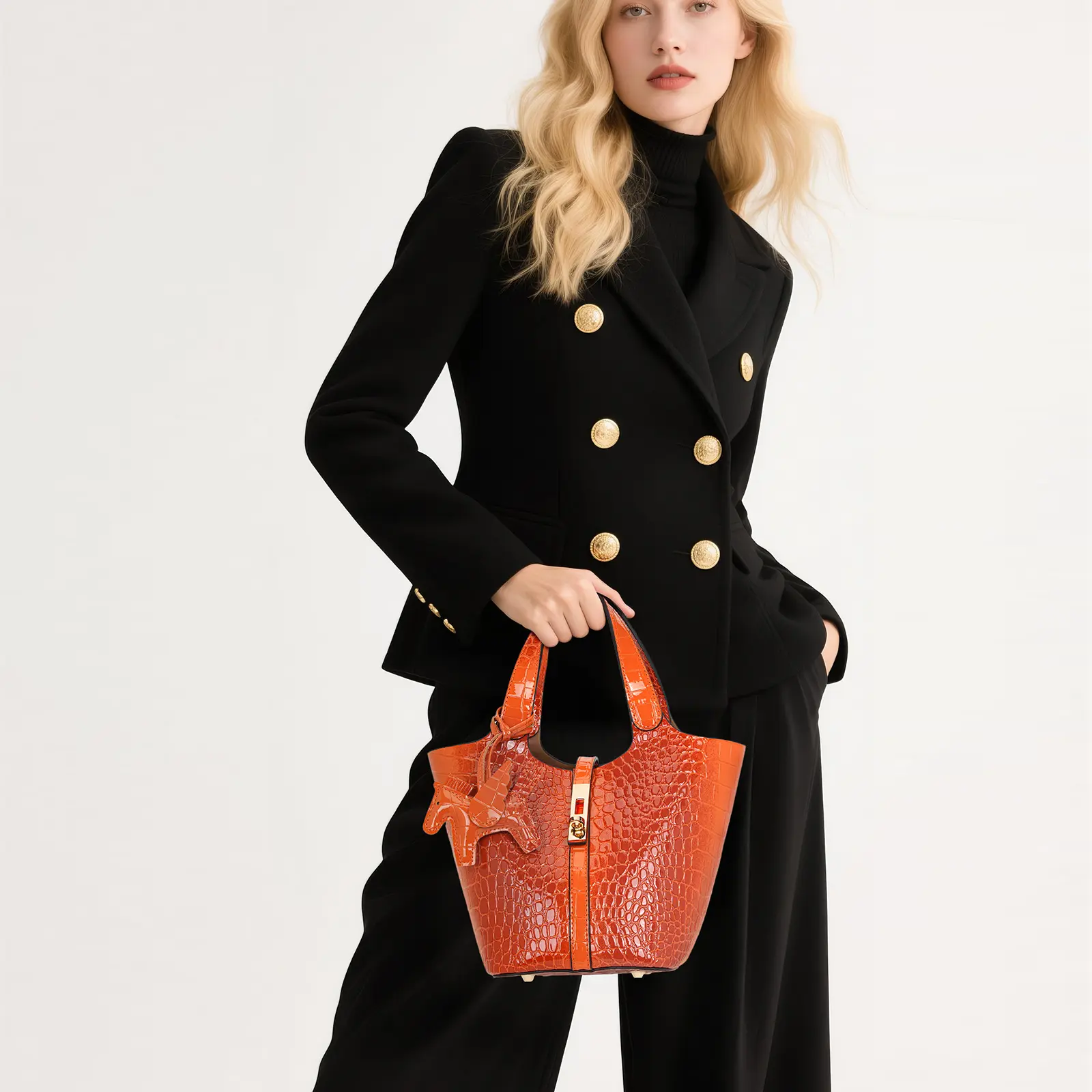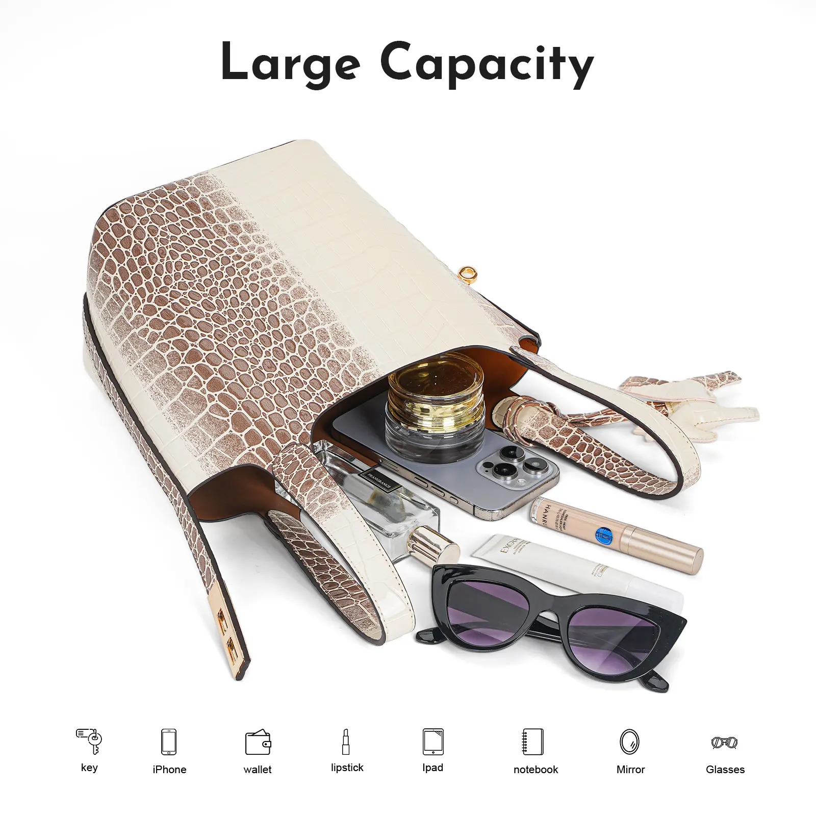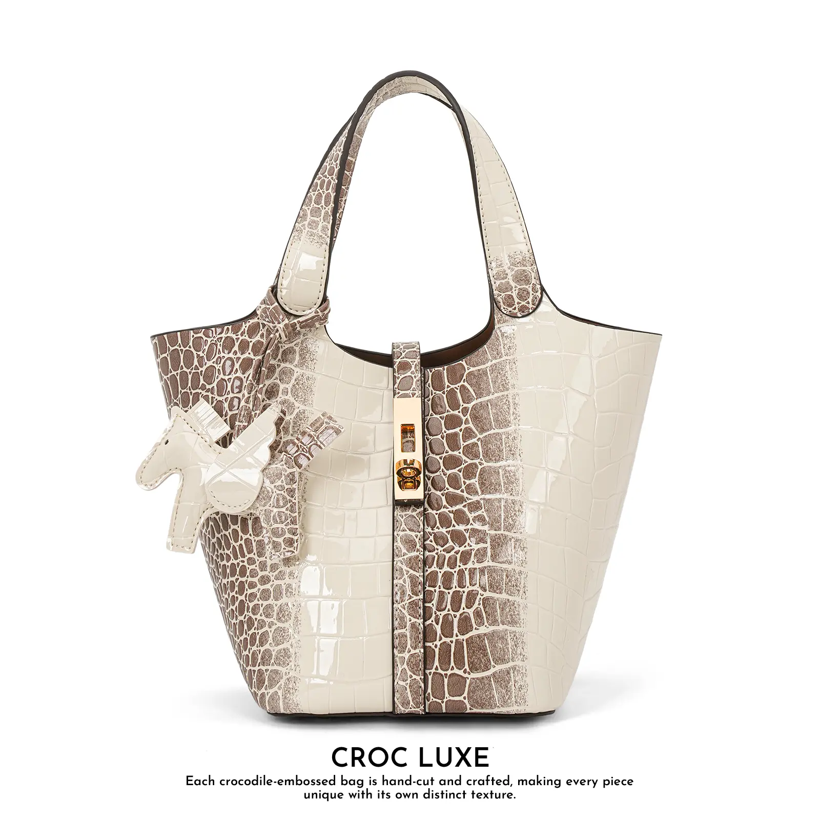 This is my 2nd bag, and i plan on getting one more color, i love the shape of this bag very sturdy,great structure, the crocodile detail is very beautiful and bold, comes with a bag insert for more organization, also this cute bag charm was included super cute 10/10 recommend