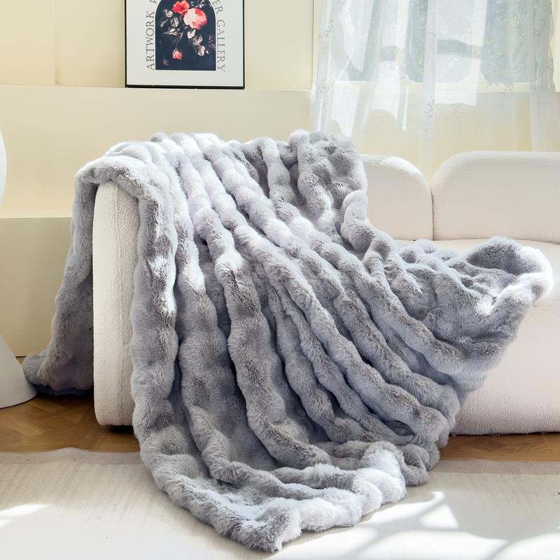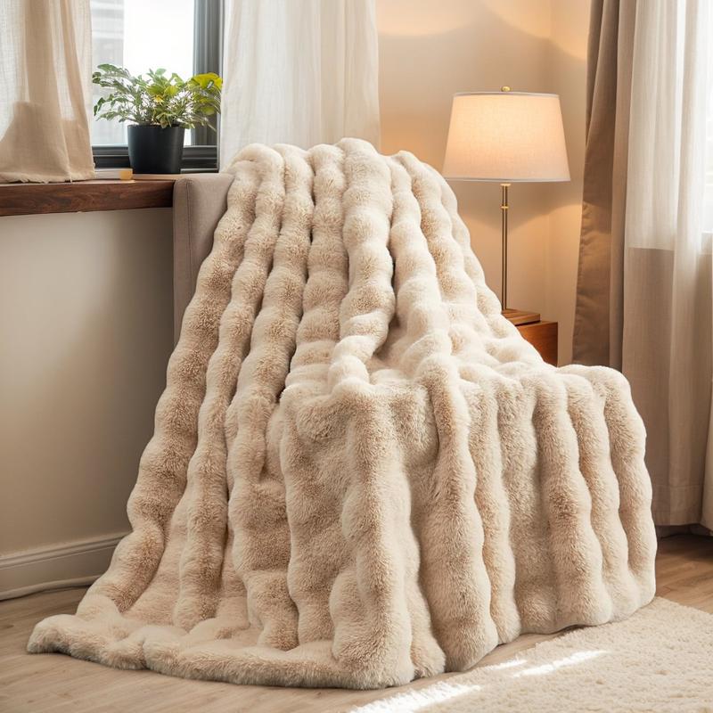 This blanket is machine washable, offering convenience. Its design makes it suitable for various settings, from bedrooms to living rooms. The faux rabbit fur adds a touch of luxury without compromising on comfort. A thoughtful gift for anyone looking for a soft, warm blanket. 🎁