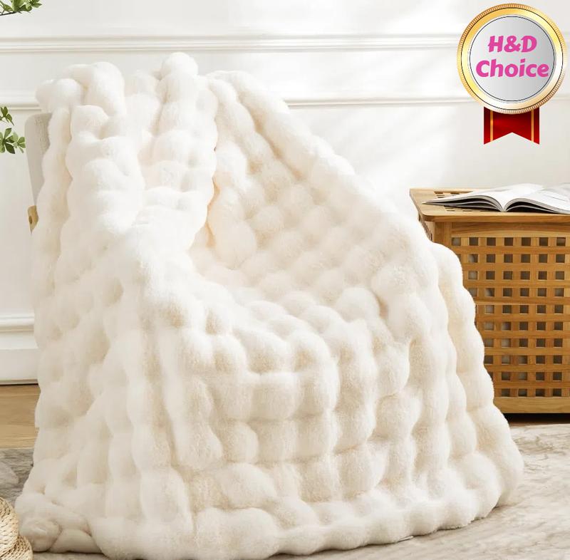 ✨ The H&D Faux Rabbit Fur Throw Blanket is an ideal Christmas gift. It features an ultra-soft fleece-lined back, ensuring comfort. The blanket is breathable, thick, and heavy, perfect for beds, sofas, or couches. It's comfy, warm, and cozy, making it a great choice for dorm decor. Hypoallergenic, it's safe for girls and women. 🌟
