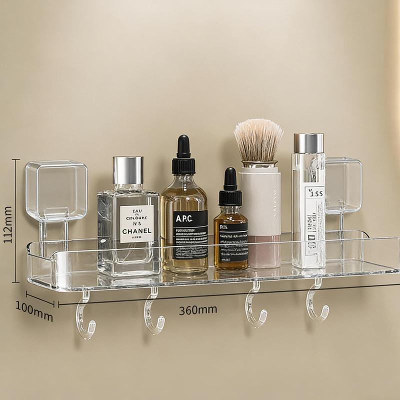 Versatile storage for bathroom essentials like shampoo, body wash, and toothbrush cups. It saves counter space and keeps bathrooms orderly.