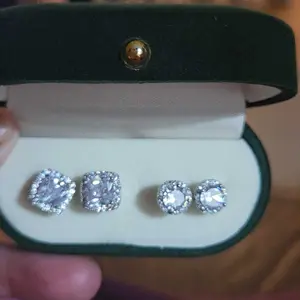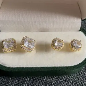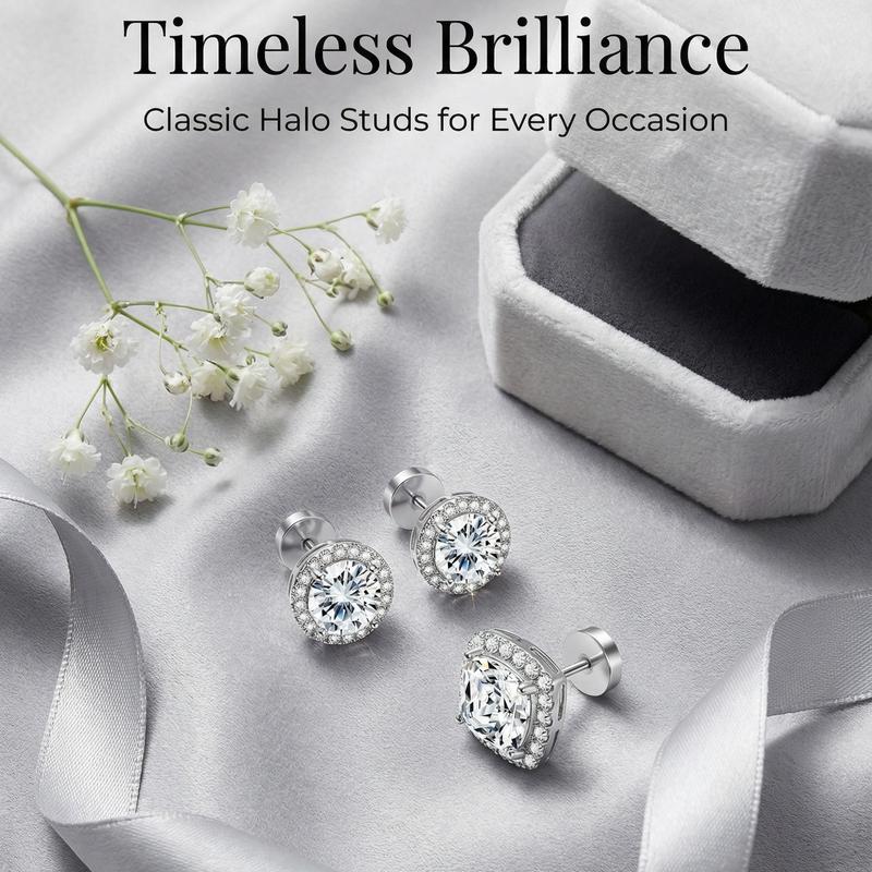 Elevate your style with this hypoallergenic copper-plated Halo Zircon Stud Set. Available in gold and silver finishes, this set includes round and square studs. Perfect for holidays or birthdays, it comes with an exquisite jewelry box. Ideal as a premium gift, this set is a standout choice for any occasion. #HolidayGiftSet #4PieceJewelry