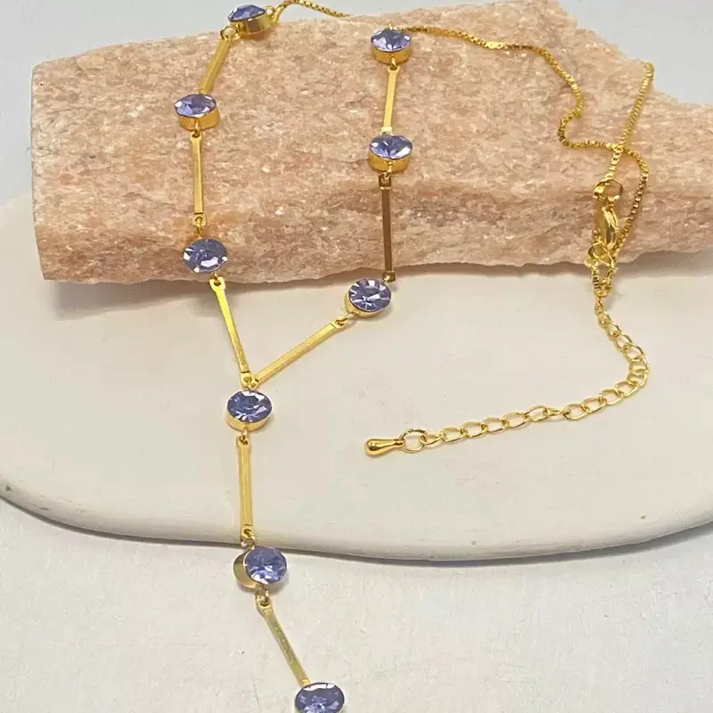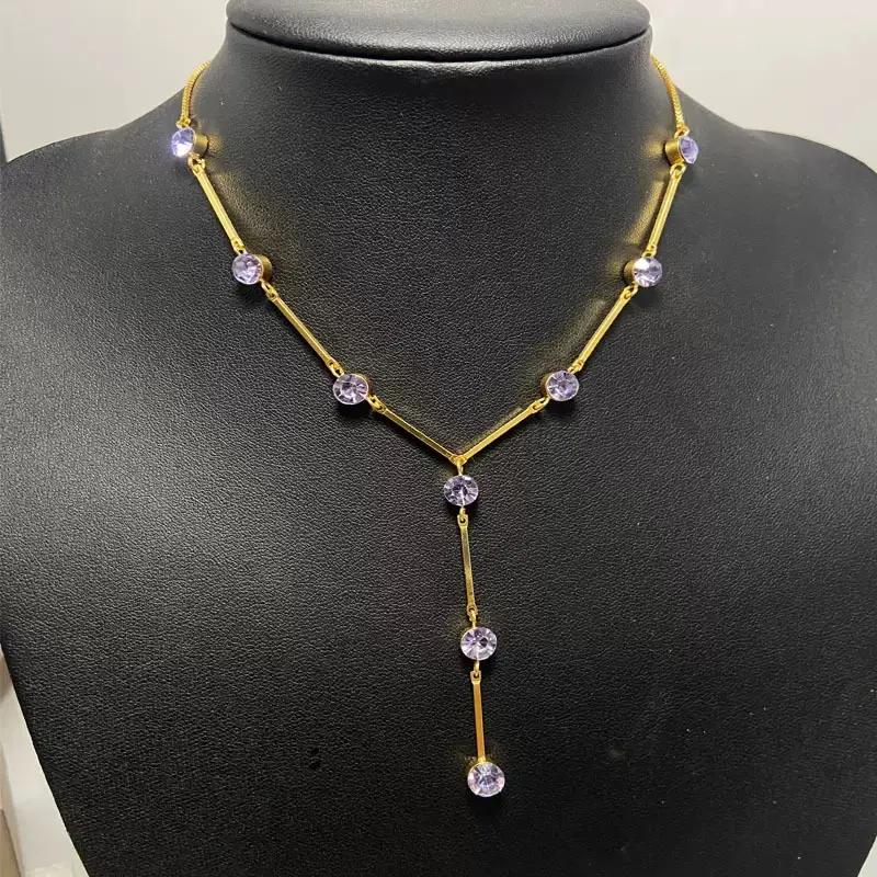✨ Elegant Collarbone Chain ✨ Discover the Purple Crown Crystal Necklace, 14K gold-plated with a sparkling zircon pendant. This chic statement piece is perfect for women who love to make an impression. The elegant collarbone chain adds sophistication to any outfit. Ideal as a fashion-forward gift, it elevates your style effortlessly. Embrace the glamour with this exquisite necklace.