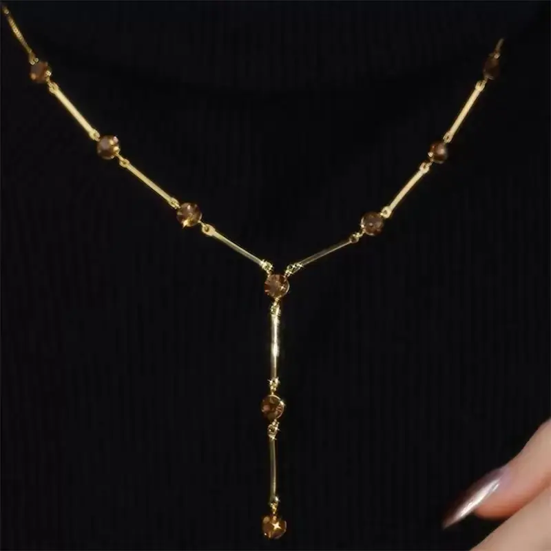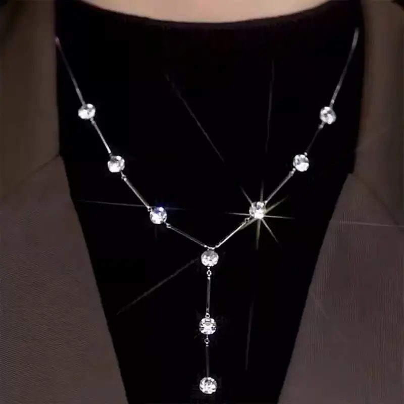 LisiZen Luxury Long Necklace for Women, Chic Minimalist Collarbone Chain, Elegant Statement Fashion Jewelry, Autumn Winter Trend Accessory DZXL3405 SpringStatements