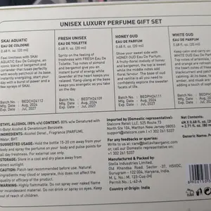 The bottle of Honey Oud leaked and the Skai aquatic is chipped in the unisex box. All others are fine.