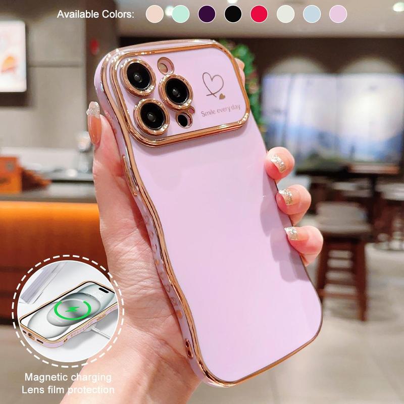 Ever wish your phone case could be both cute and protective? Meet this soft TPU phone case with a unique curly wave frame and adorable love heart patterns—perfect for adding a touch of charm to your iPhone 11 through 16 Pro Max. The luxury electroplating process gives it a smooth, durable finish that feels great in your hand while making your phone stand out.