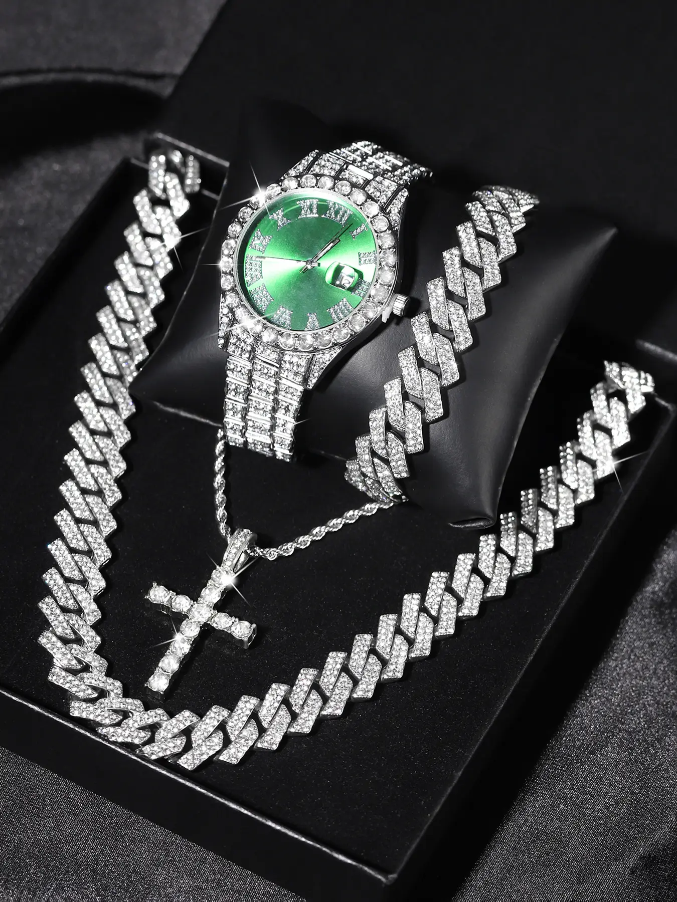【Unique Set】: This gift box includes five pieces: a watch, necklace, and bracelet, featuring a cross motif for a standout appearance.