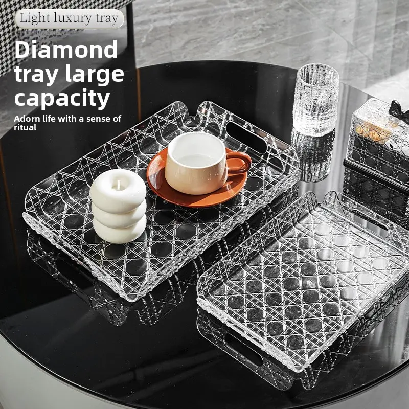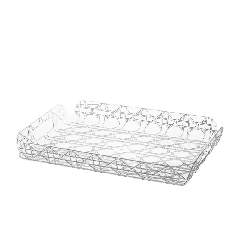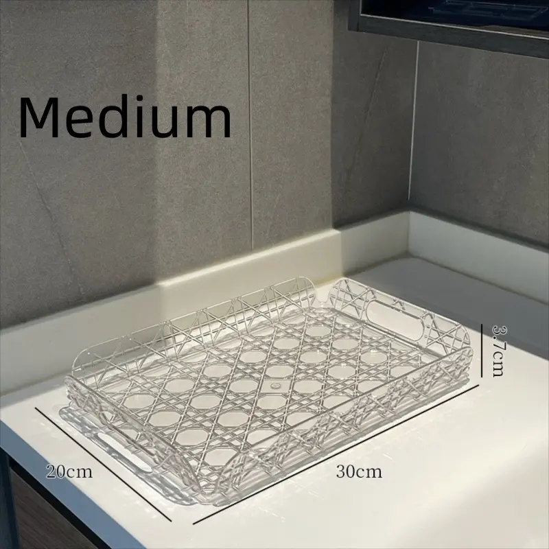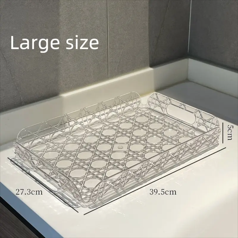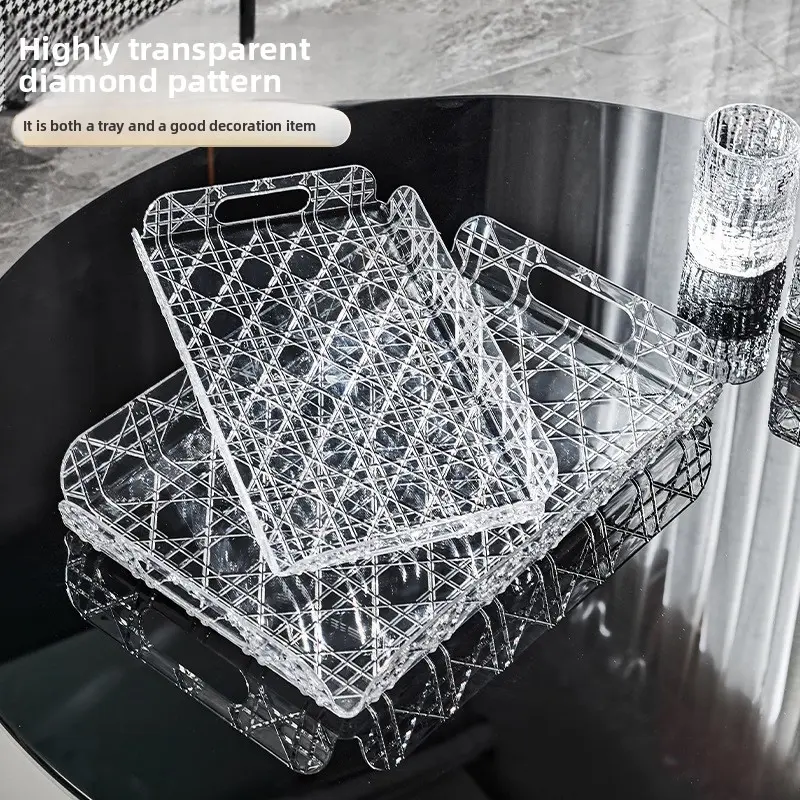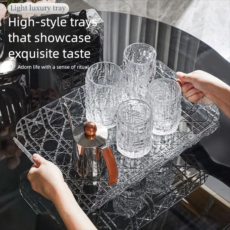 Luxury Rattan Pattern Tea Tray, High-End 2026 New Model, Rectangular Tray for Home, Living Room, Coffee Table, Beauty Accessories