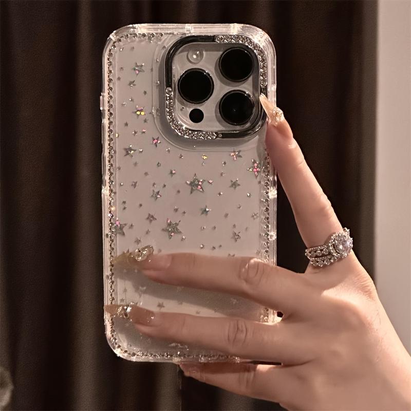 New Luxury Rhinestone Fashion Phone Case, Transparent Sparkling Star Bumper Anti-Drop Cover for iPhone 17 Pro Max/17 Air/16/15/14 Plus/13/12 - Christmas Gift, New Year's Present, Easter & Halloween Surprise