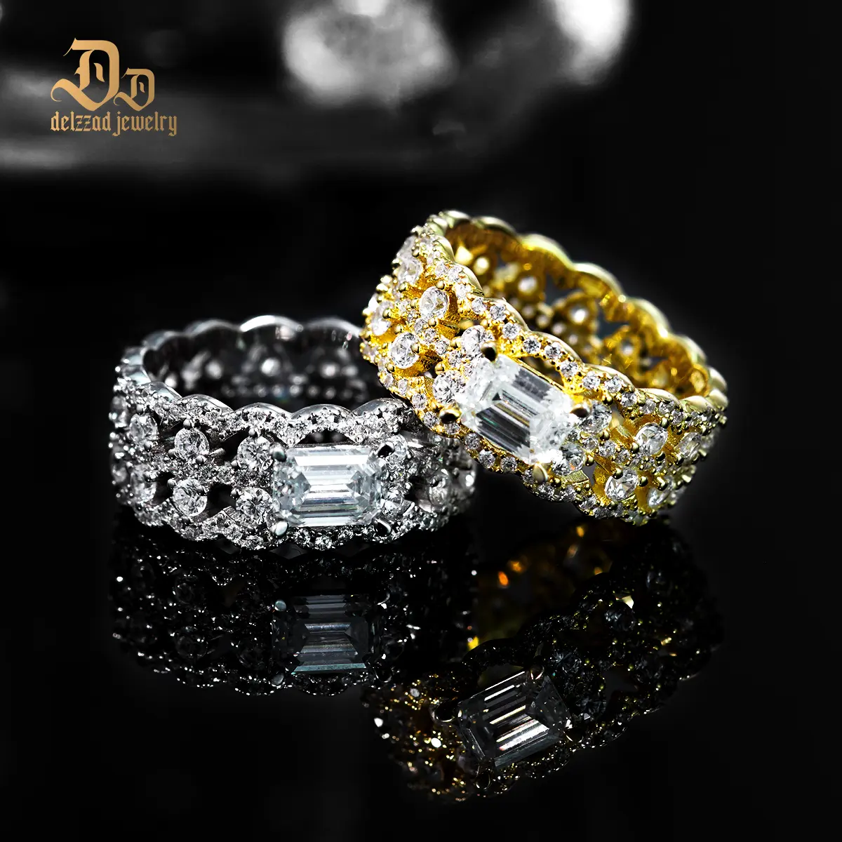 Delzzad 1ct Octagon Luxury Ring Synthetic Moissanite Ring Band In 925 Sterling Silver Birthday Anniversary Mother's Day Christmas Gifts for Men Women