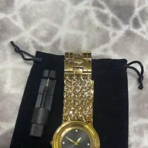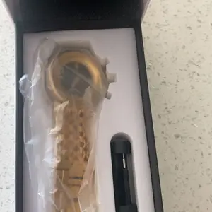 Esta hermoso biene ensu camita y trae nose como decirlo es una erramienta para ajustar el reloj y que bien exelente porque si tuve que ajustarlo mis muñecas son delgadas