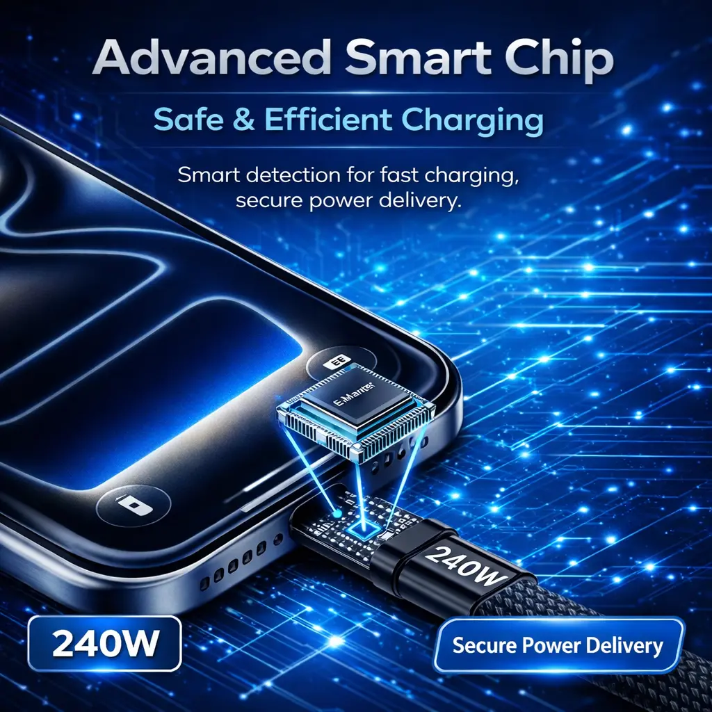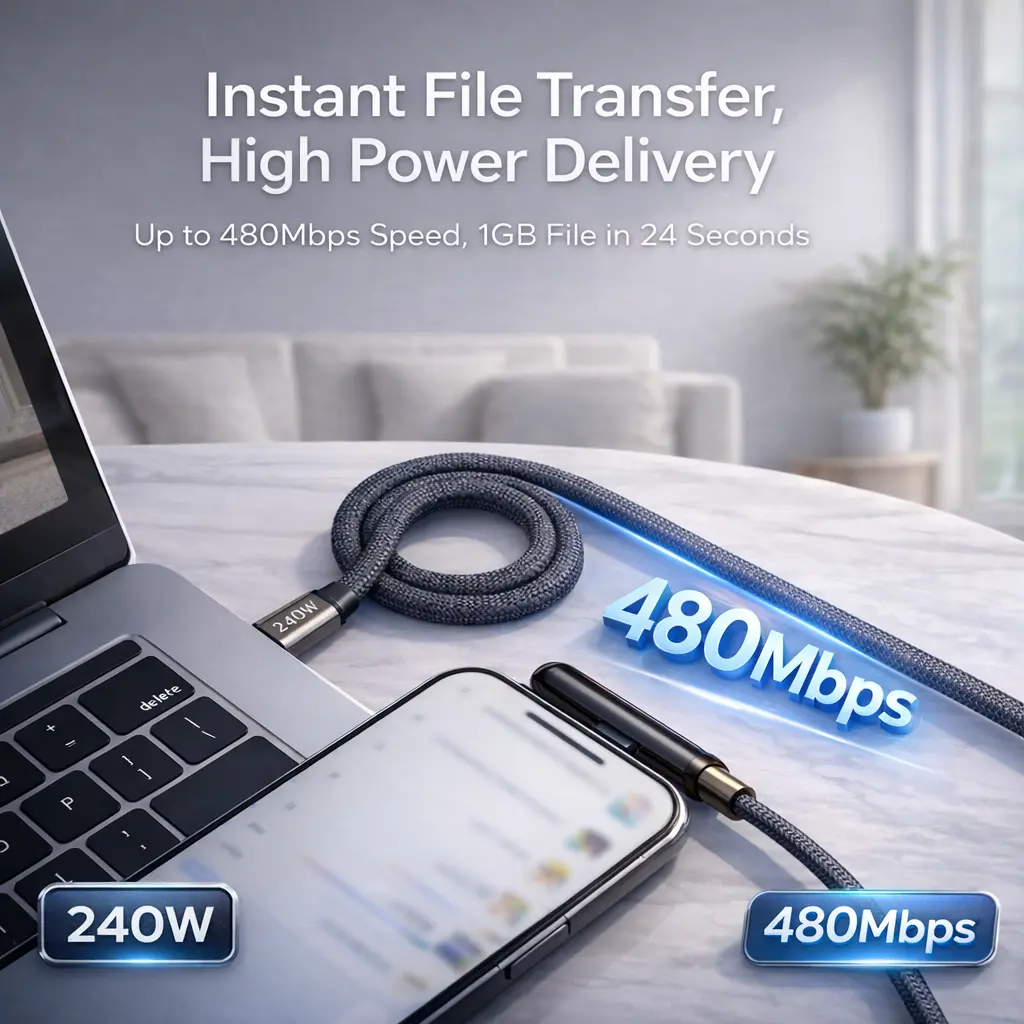·【240W PD 3.1 Fast Charging for USB-C Devices】 Supports up to 240W max output to deliver fast and stable charging for smartphones, tablets, and compatible USB-C laptops when used with a supported USB-C power adapter.
