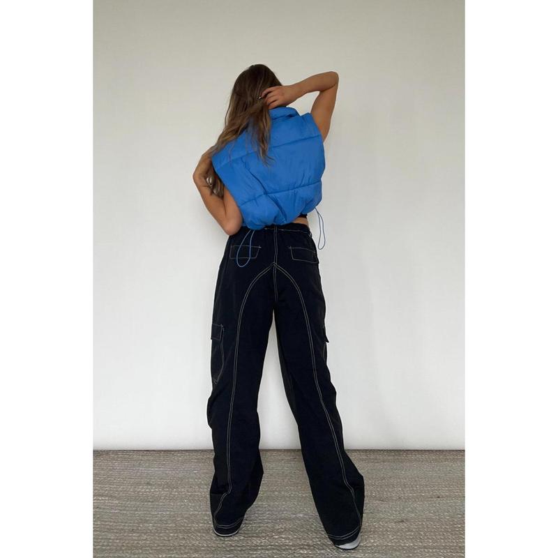 Parachute pants are a must have this season! The Lydia Contrast Seam Parachute Pants feature adjustable drawstrings at the ankles, a high rise fit, and contrast stitching. Pair with the Elodie Cropped Puffer Vest for the ultimate streetwear look.