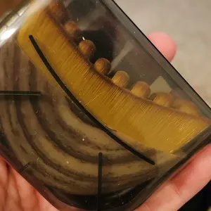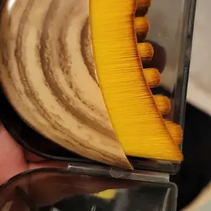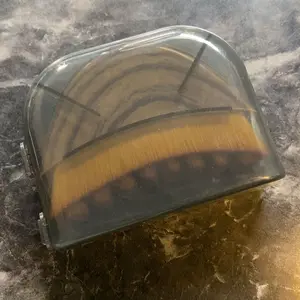 Plastic container that it came in had a broken clasp and the edges of the brush are sharp and can scratch you if you’re not careful. It’s cheap for a reason. 😞