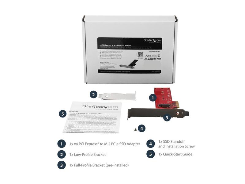 StarTech.com PEX4M2E1 M.2 Adapter - x4 PCIe 3.0 NVMe - Low Profile and Full Profile - SSD PCIE M.2 Adapter - M2 SSD - PCI Express SSD