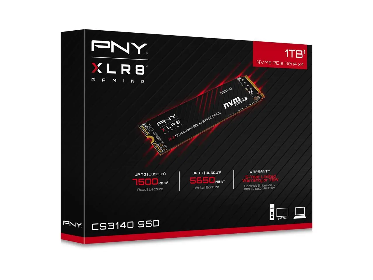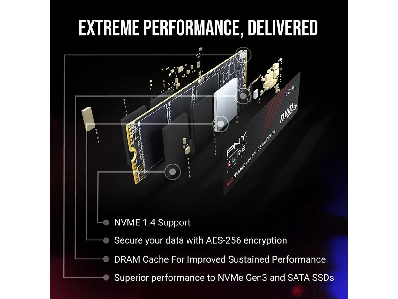 PNY XLR8 CS3140 M.2 2280 1TB PCI-Express 4.0 x4, NVMe 1.4 3D NAND Internal Solid State Drive (SSD) M280CS3140-1TB-RB