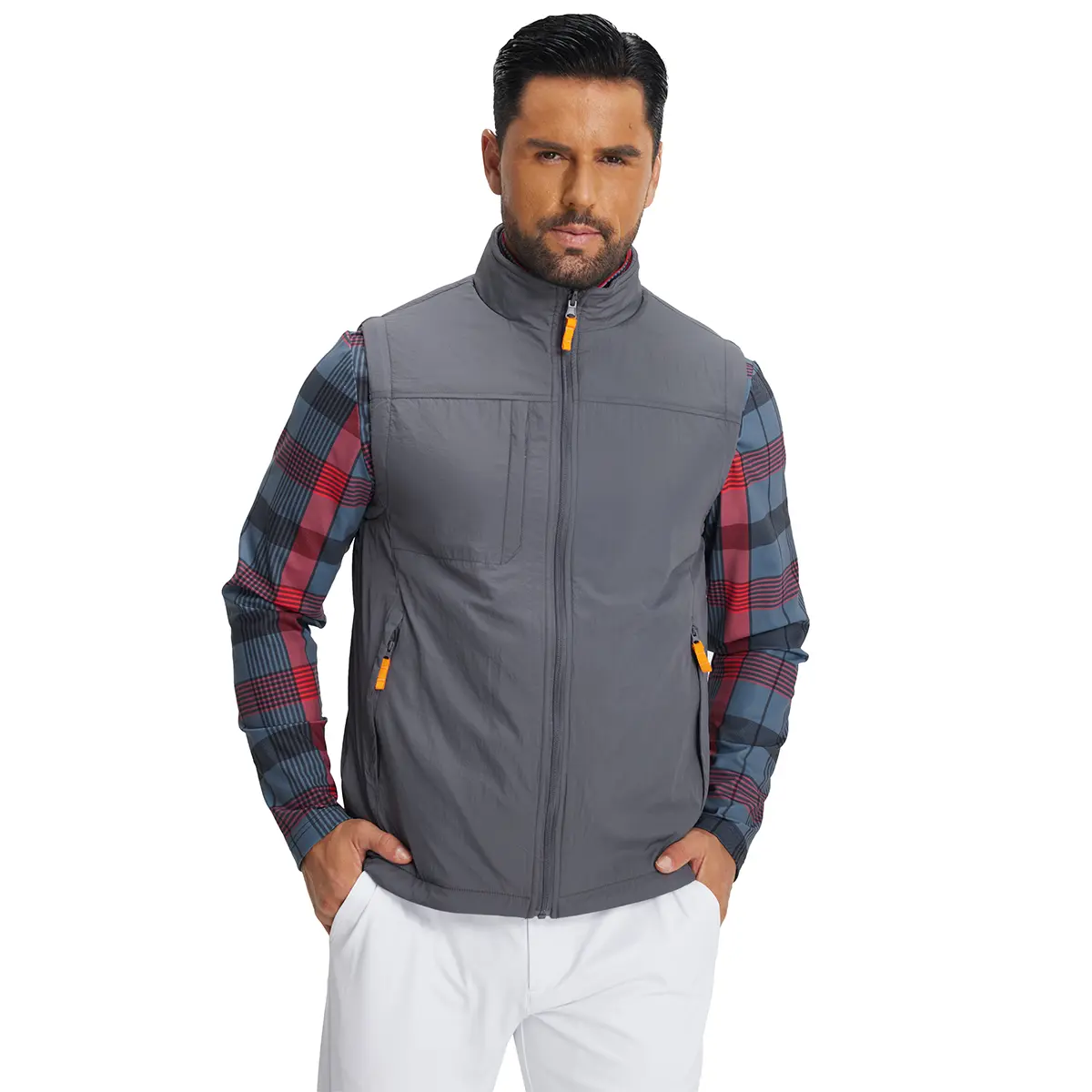 This vest is suitable for men who engage in golf or need a versatile outerwear piece. It is ideal for outdoor activities where comfort and functionality are important. The sleeveless design makes it a great option for layering.