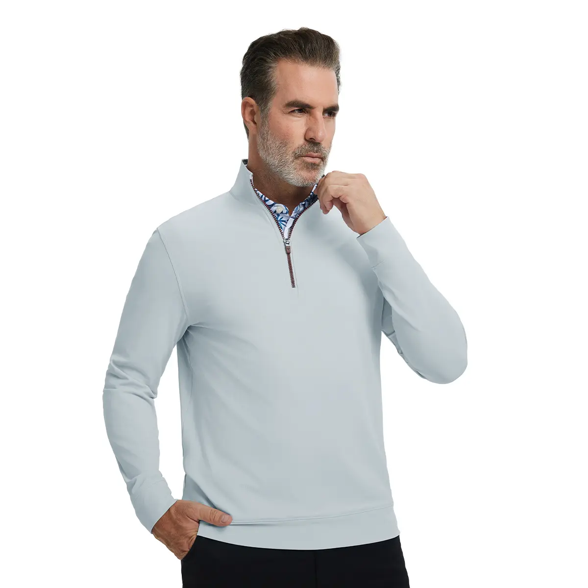 The material is good quality but the zipper is bright pink and plastic so it makes the shirt look cheap.
