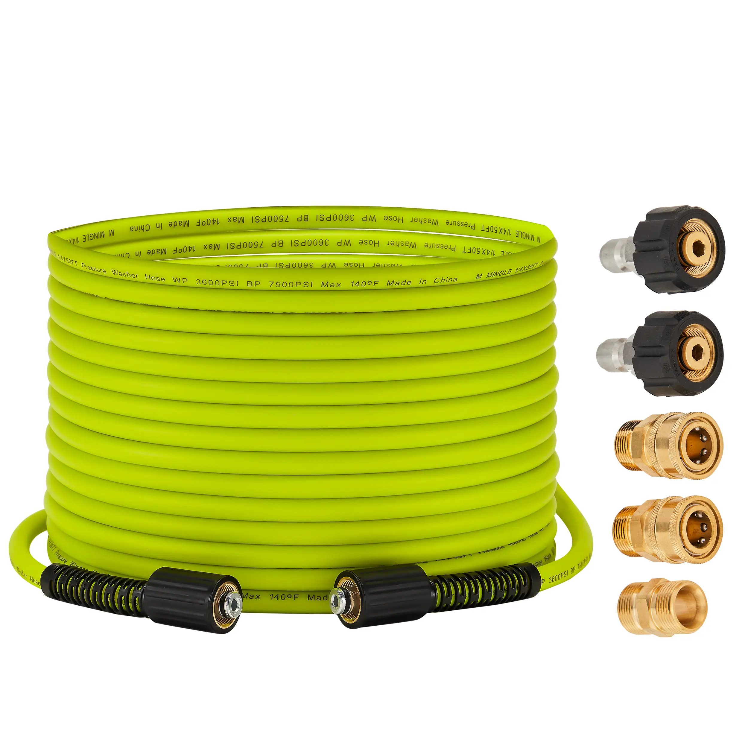 ·PACKAGE INCLUDE - Including 1 x pressure washer hose 50 feet, 1 x coupler (M22 14mm male to male) and 2 x adapter sets (M22 14mm female + 3/8" plug, 3/8" quick disconnect + M22 14mm male).