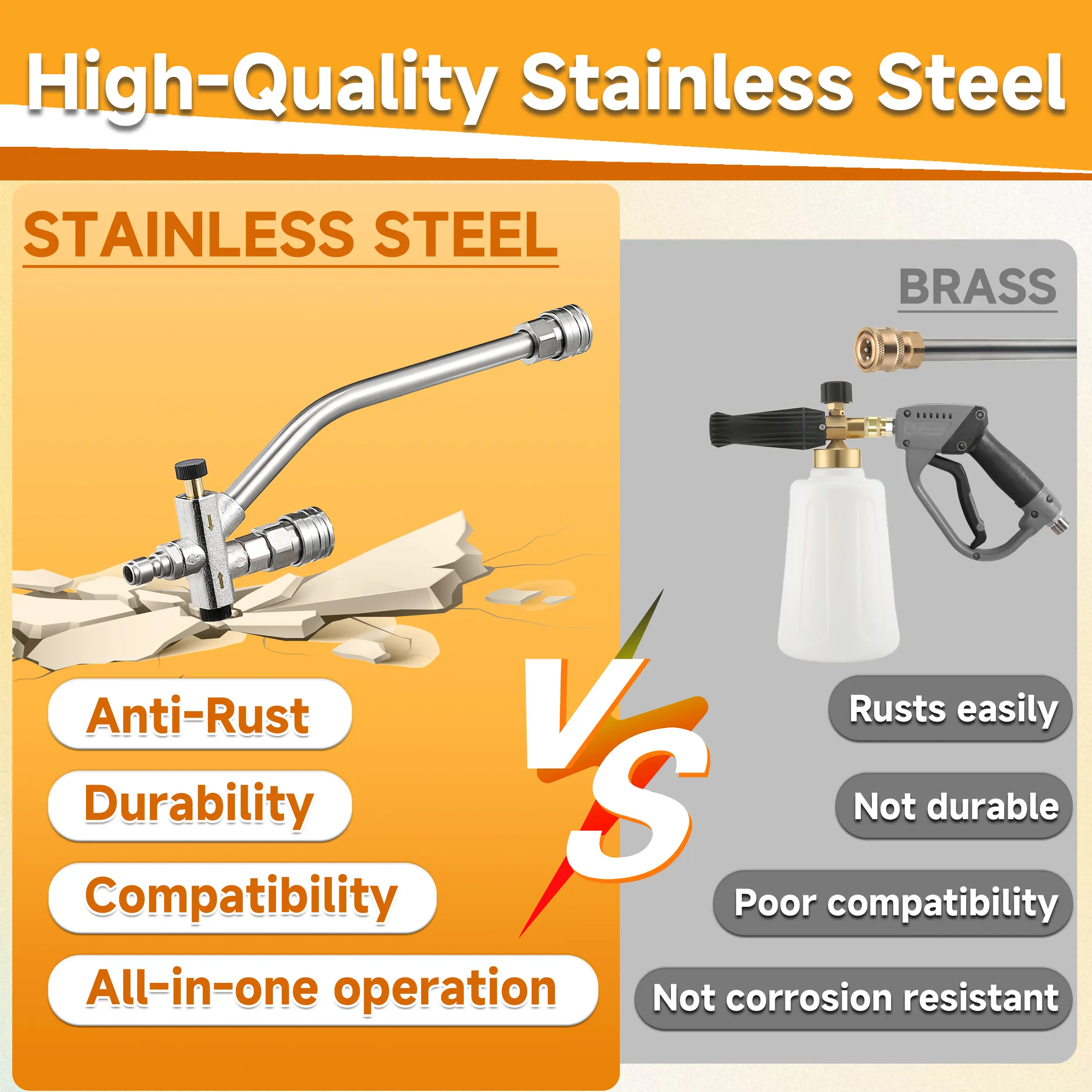 ·Dual-head Connector: With a two-way valve for easy switching between foam and water flow.