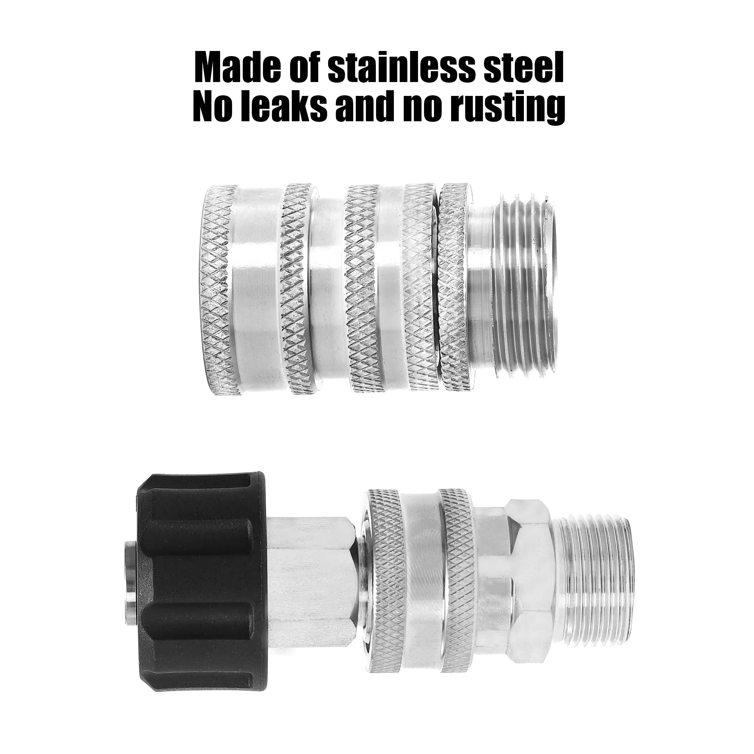 Newly upgraded and made of stainless steel, this adapter set is not easy to rust and is more durable. It supports a working pressure up to 5000 PSI. Perfect for heavy-duty cleaning tasks.