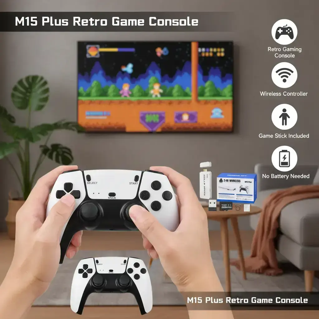 M15 Plus Retro Game Console Upgrade, Includes Game Stick, Wireless Controller, Game Simulator, 5w Rated Power, No Battery Included, Gaming Console