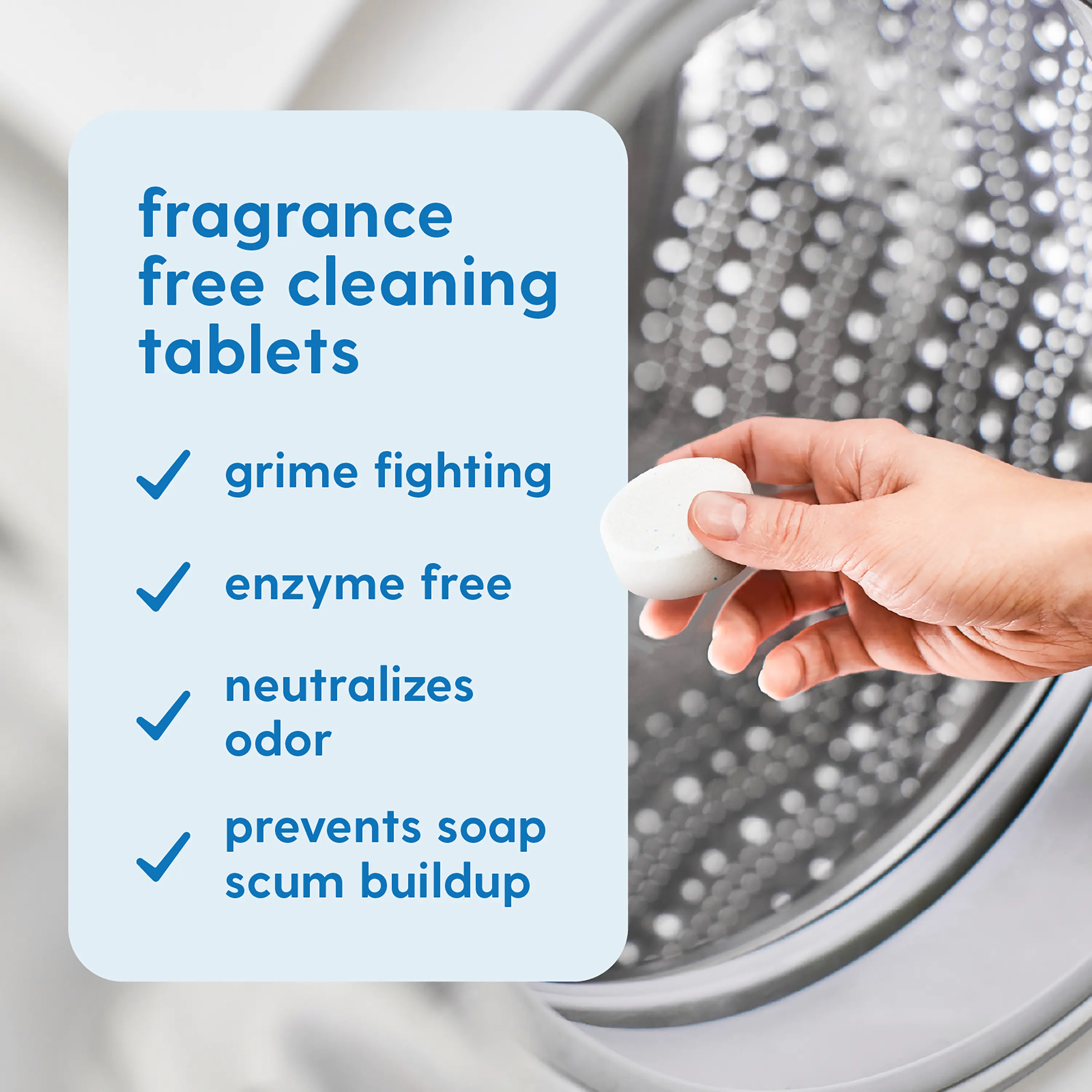 Includes 24 tablets—a year of monthly maintenance. Compatible with front loader and top-load models. Keep your washing machine fresh and clean with this septic tank-friendly, fragrance-free supply.