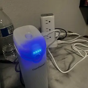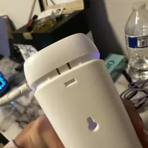 Built-in rechargeable battery supports cordless use. Includes adhesive mount for wall installation or tabletop placement, suitable for various spaces.