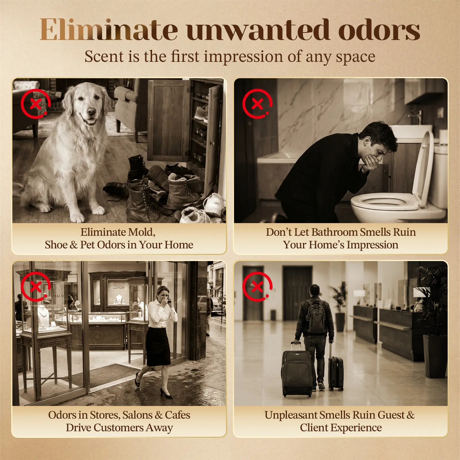 Features 4 adjustable scent levels and an automatic working/rest cycle, allowing flexible fragrance strength for bedroom, bathroom, office, or living room use.