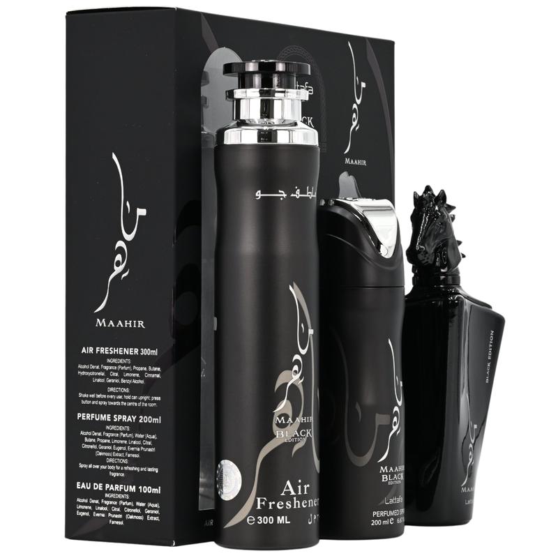 Maahir Black Edition by Lattafa for unisex 3pcs Gift set New in Box