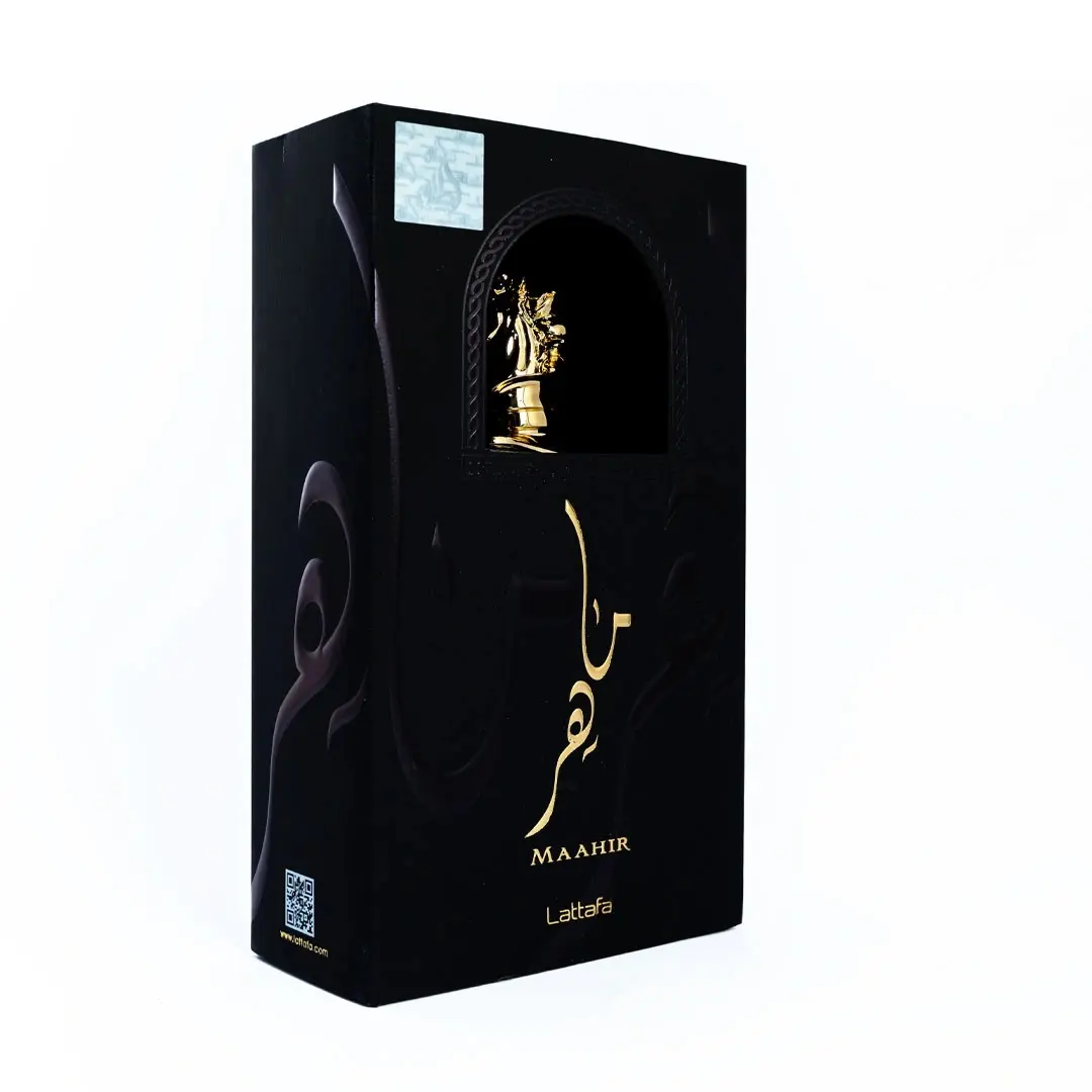 Experience the irresistible charm of Maahir EDP, a floral-fruity men's perfume by Lattafa.