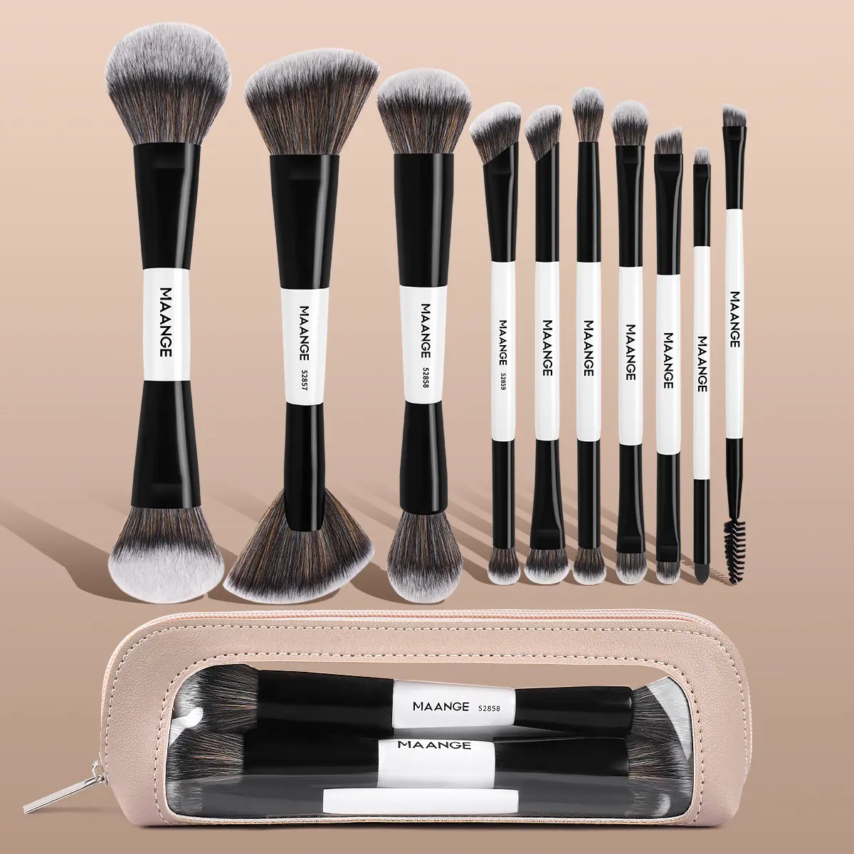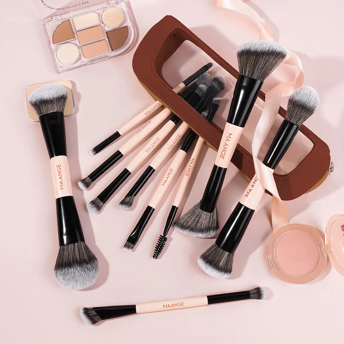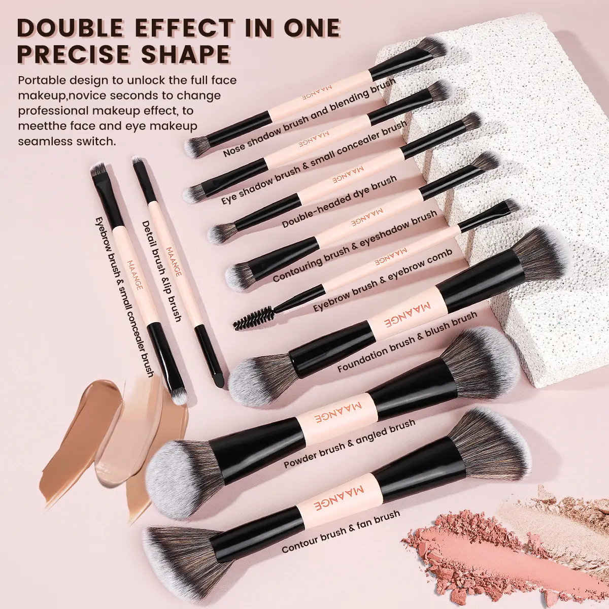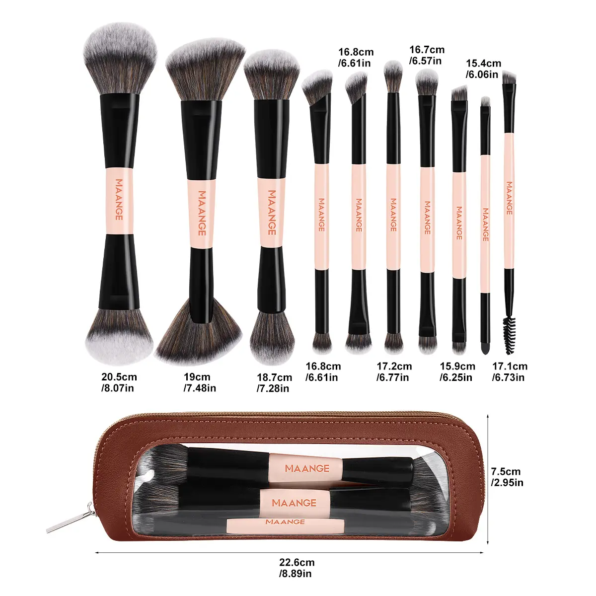 5. MAANGE 10pcs Makeup Brush Set with Cosmetic Bag, Foundation Brush Powder Brush Blush Brush Contour Brush Concealer Brush Eyeshadow Brush Eyebrow Brush Nose Shadow Brush Blending Brush Detail Brush Lip Brush, Makeup Accessories Gifts, Makeup Brushes Set
