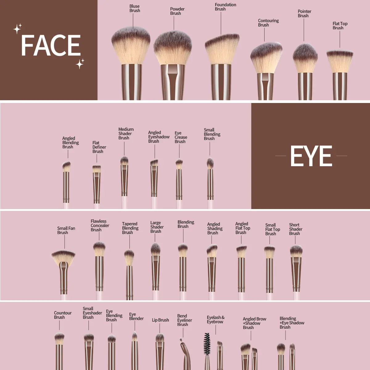 30 Counts Brushes with Velvet Bag - Black Coffee