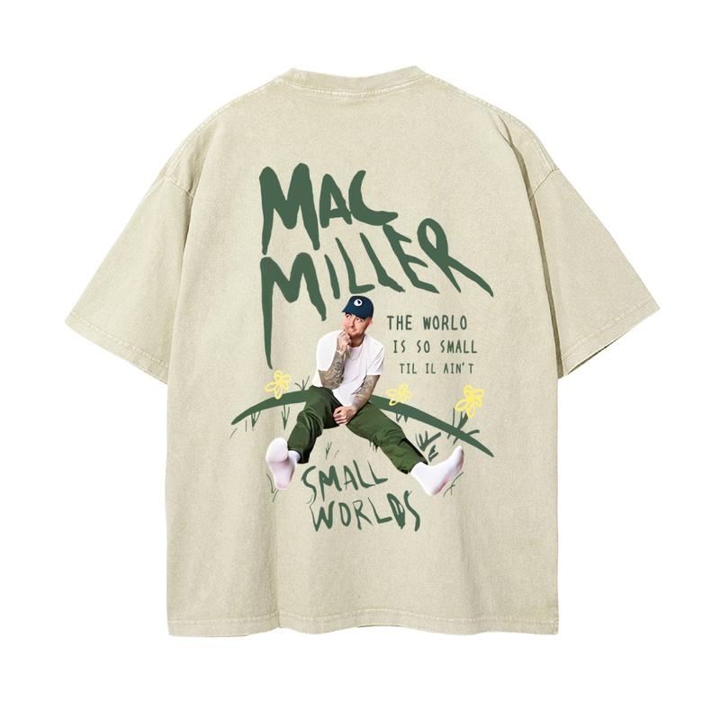 [100% Cotton] Mac Miller "Small Worlds" T-shirt, washed vintage style Mac Miller T-shirt, unisex "Small Worlds" graphic tee, men's gift X