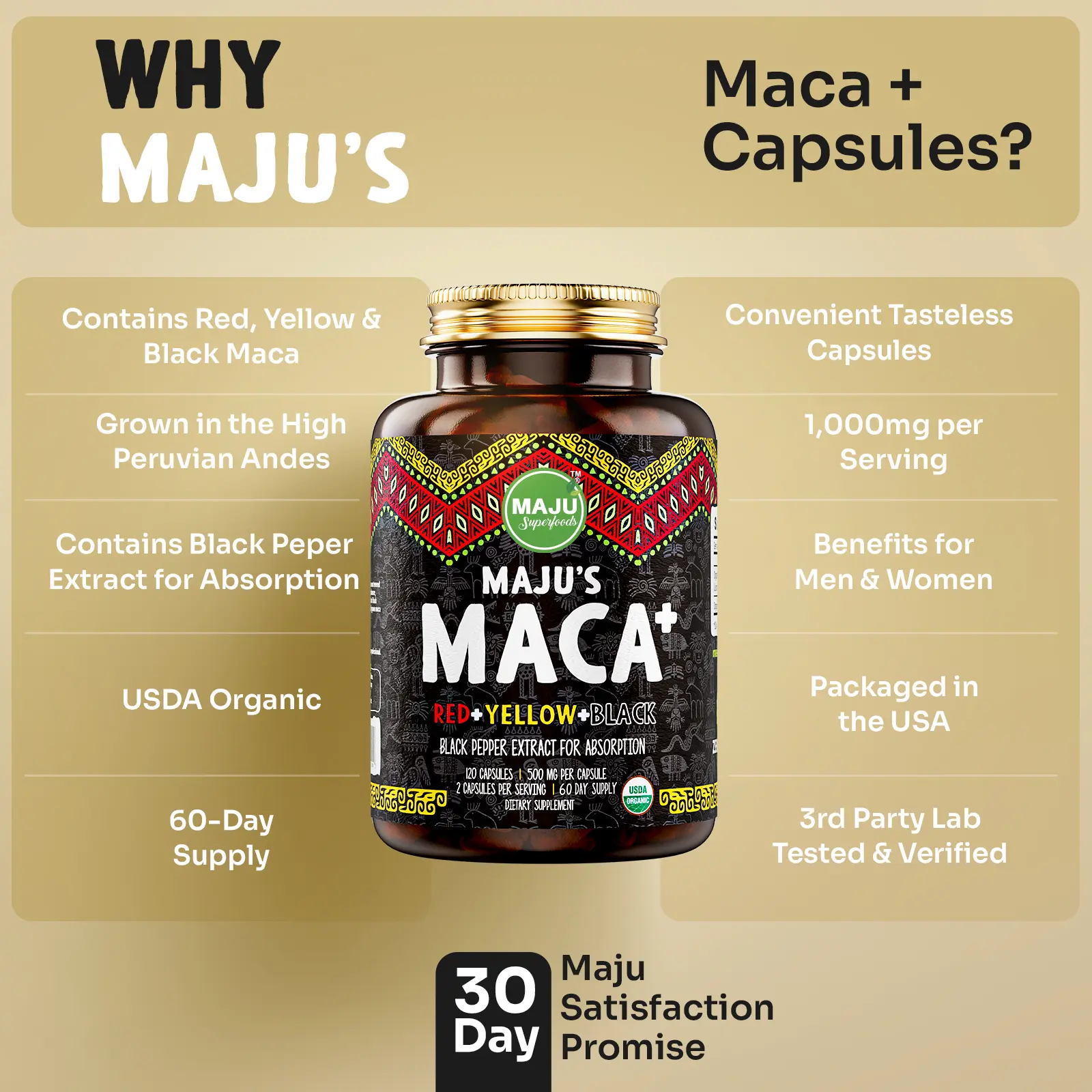 ·Maju's 30-Day Promise: Not satisfied with our maca capsules? We'll refund you, no questions asked.
