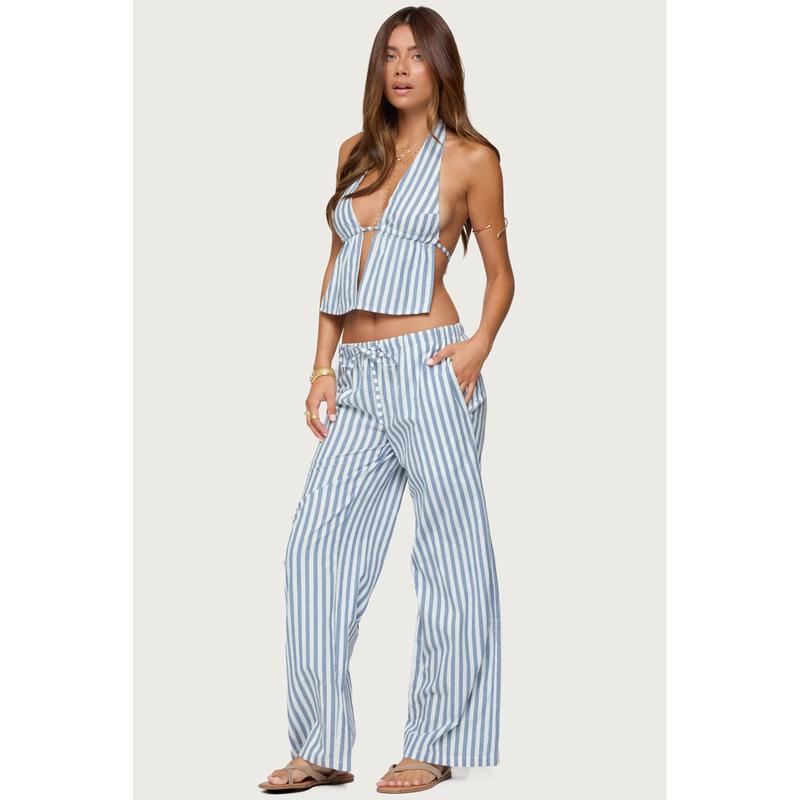 the cutest blue macey striped pants @Edikted (size s) 🤍 #edikted #linenpants #stripedpants #cottonpants