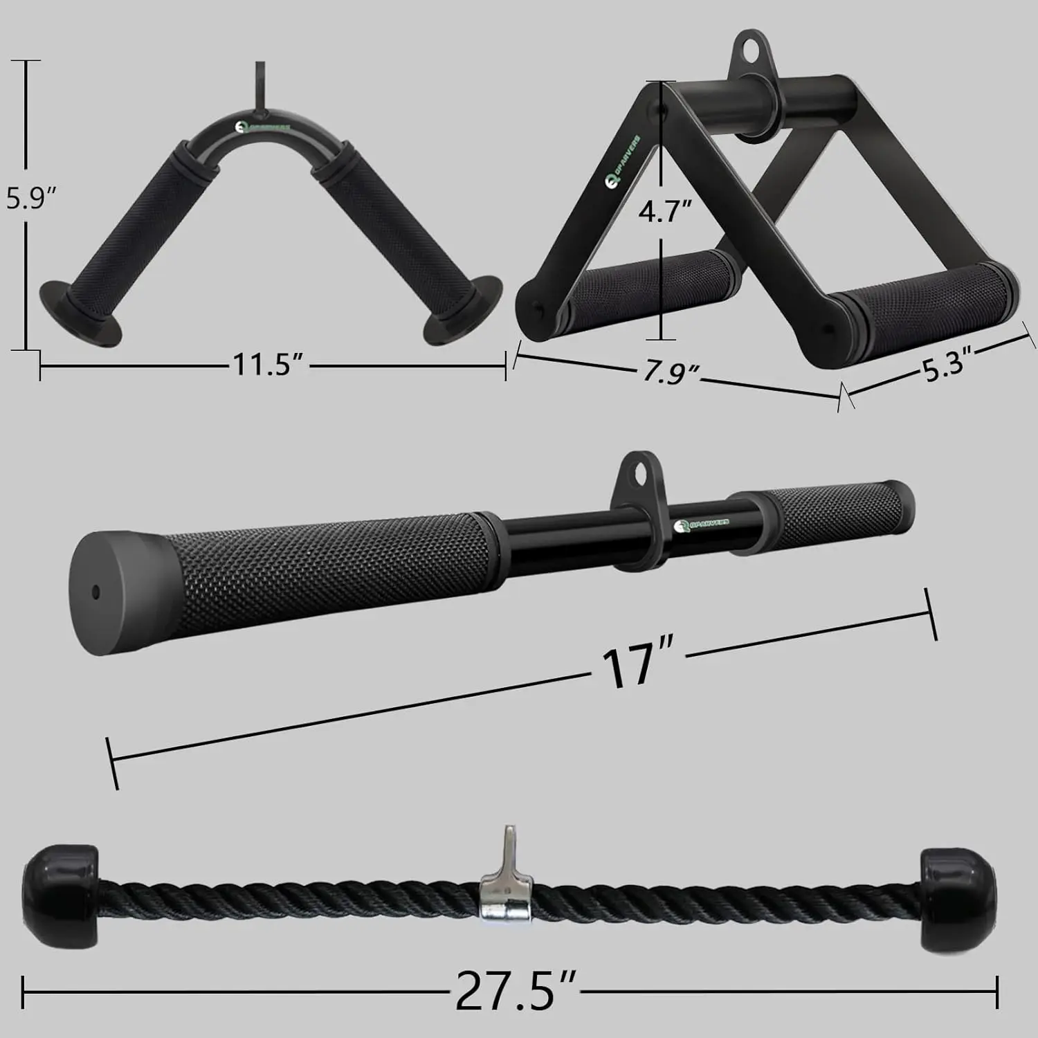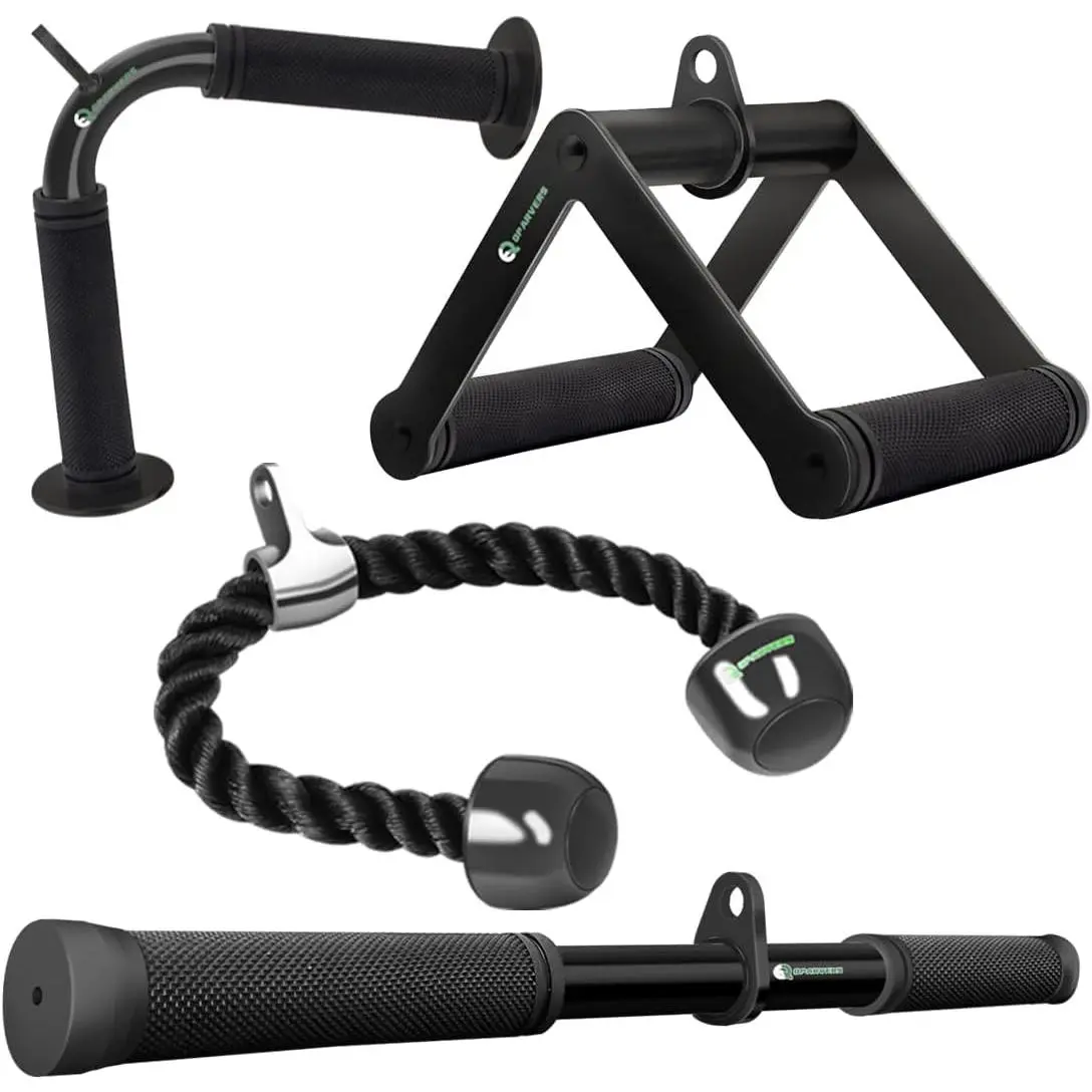 Package Includes - 1 * V-Shaped Bar +1 * Straight Rotaing Bar + 1 * V Handle with Rotation + 1* Nylon Braided Tricep Rope.