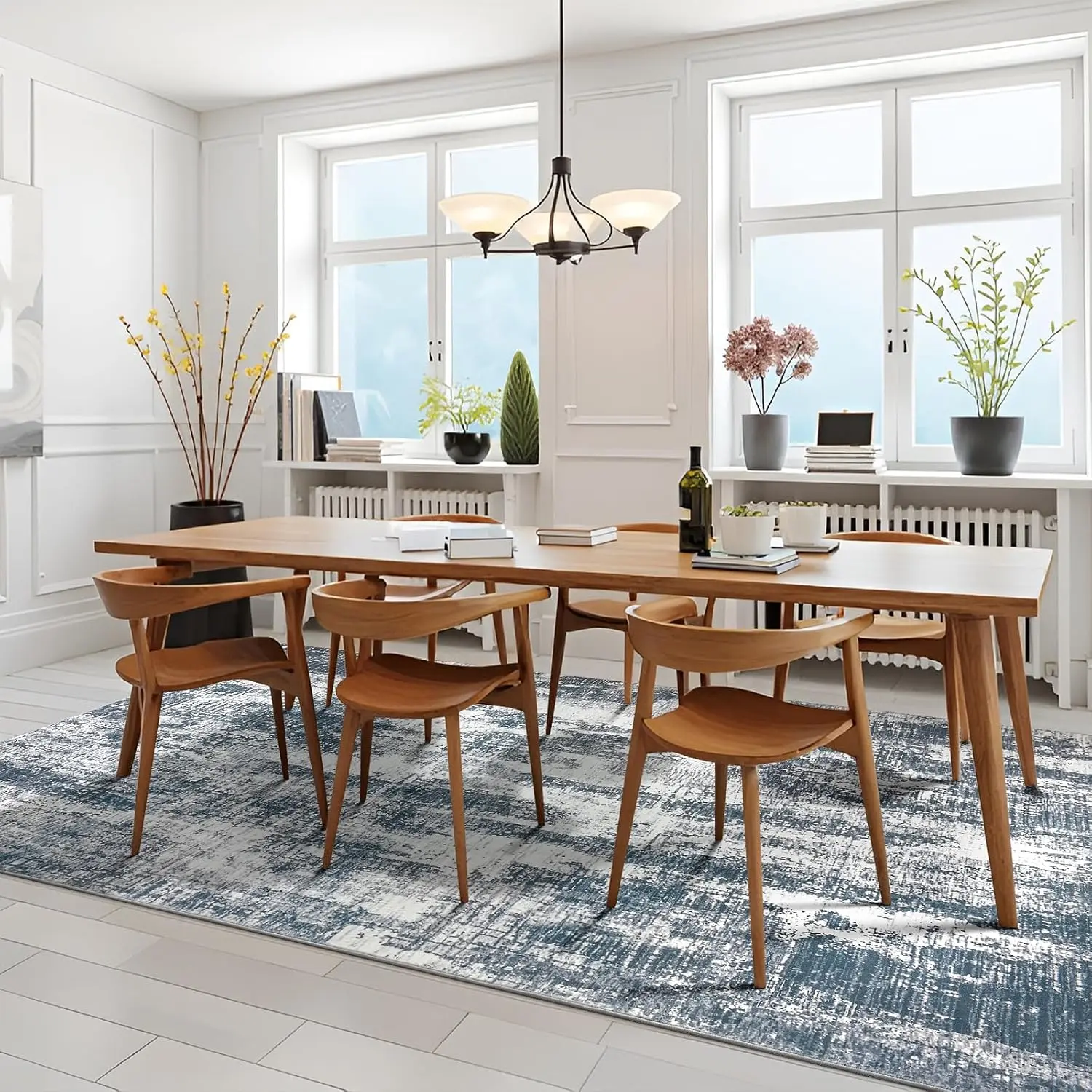 Soft Area Rug: Our dining room rugs for under table is made with soft faux wool fibers comfortable on barefoot. Reinforced edges for easy maintenance.
