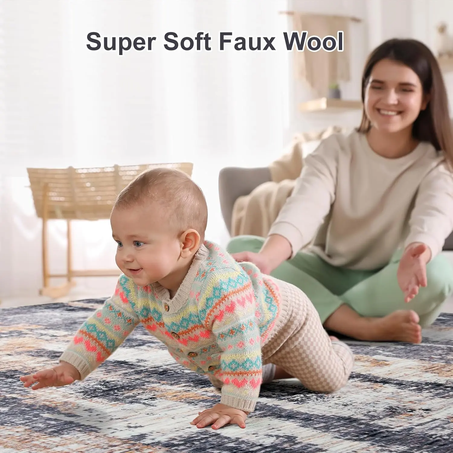 Non-slip backing: The bottom of the washable rug has a soft TPR rubber backing to keep it firmly in place on the floor, preventing shifting and slipping. No additional rug pad required.