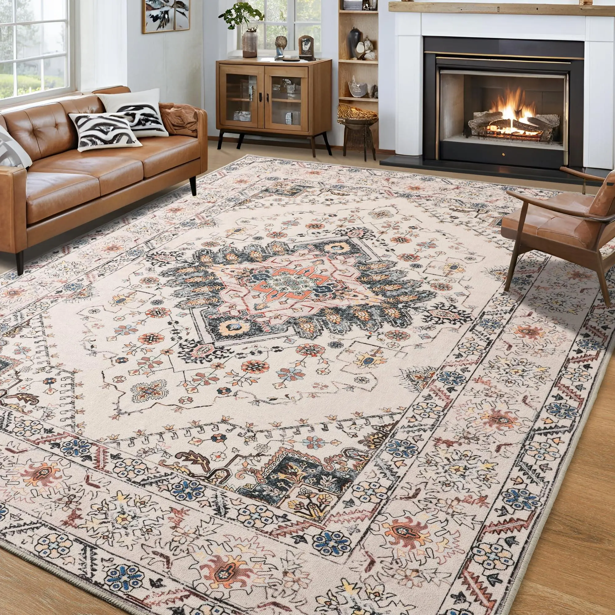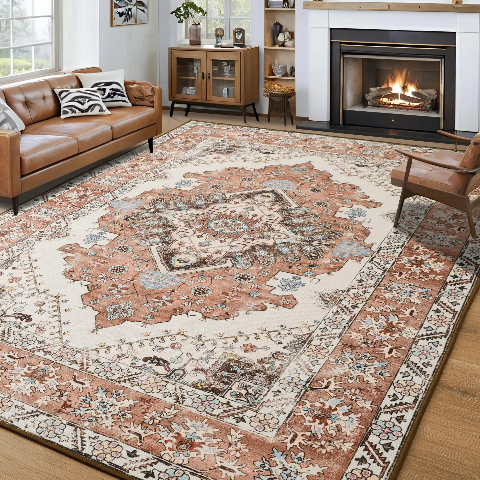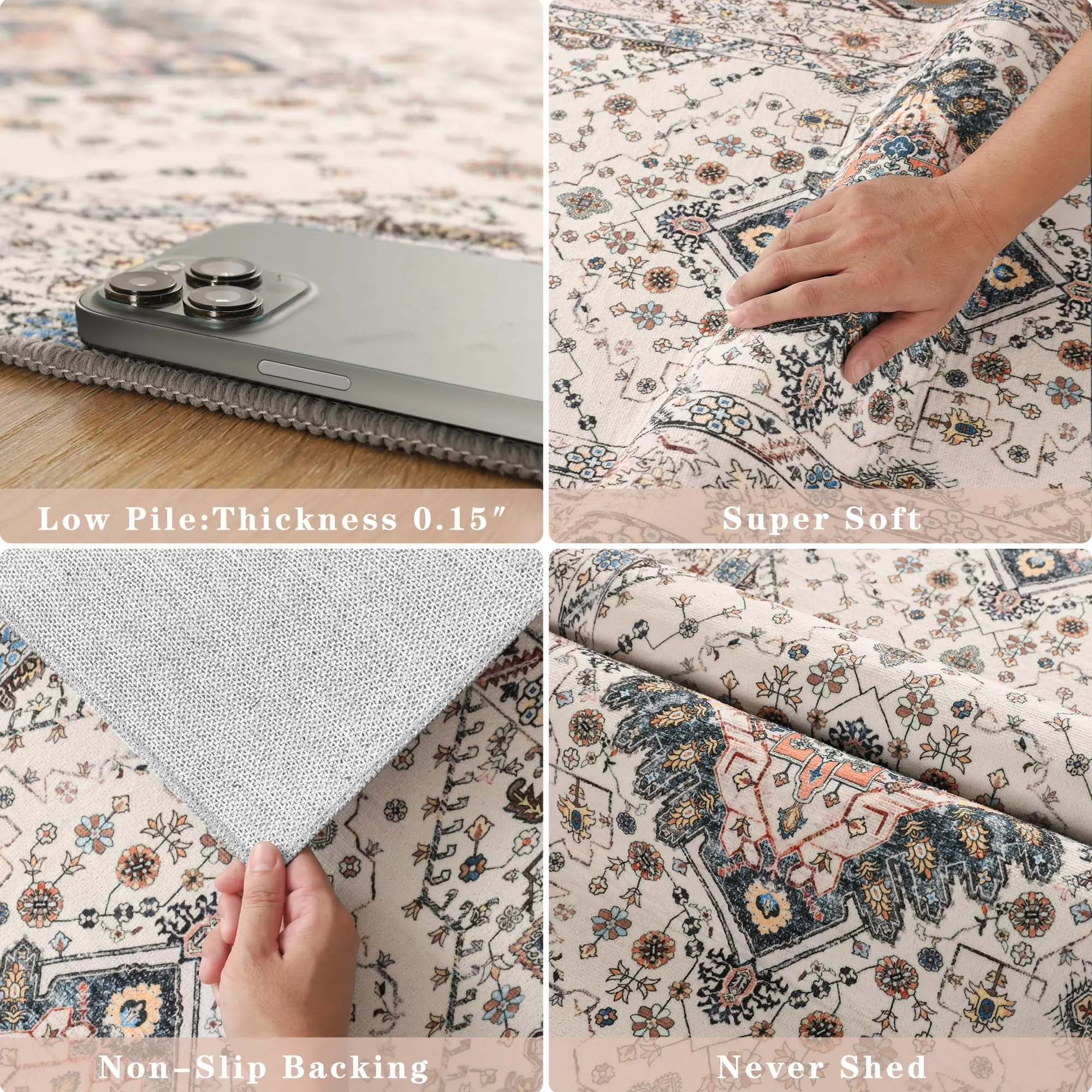 MACHINE WASHABLE RUG: Our washable rugs are easy to clean and save you time.The vintage rug can be machine washed, vacuumed, broom or rag cleaned.WARM TIP: Your washable carpet will arrive in a folded package,and it may create some creases.Don't worry, please allow time for the crease to flatten,or iron with a hot iron on a damp towel, the creases will disappear in no time. We apologize for the inconvenience.