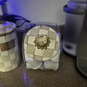 Absolutely Beautiful! I keep my coffee K Cups in it. It helps me realize that I’m running low and refill before I run out. It’s an even happier experience to drink my coffee now that I have this cookie jar with interchangeable lids 😍