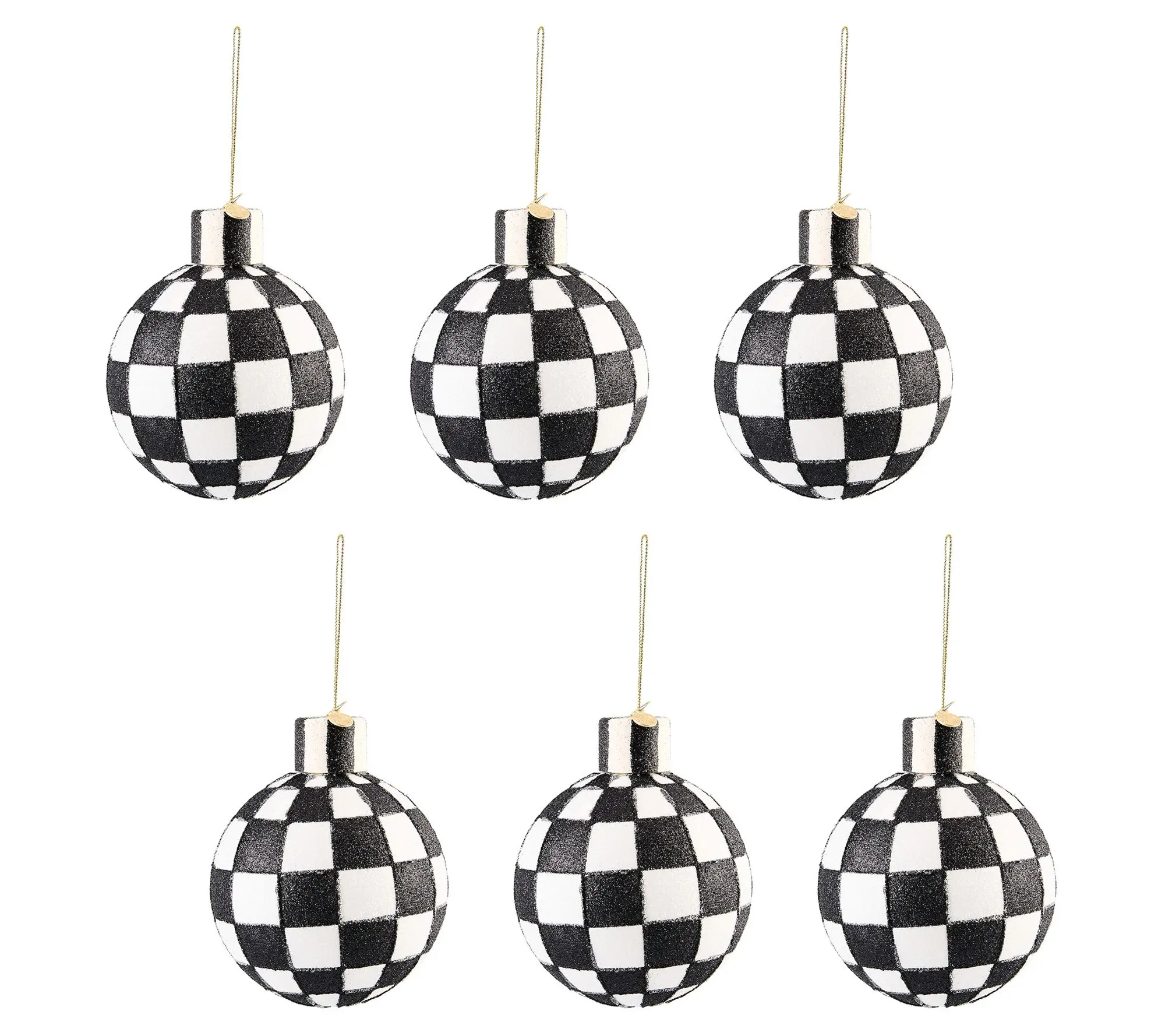 Say hello to holiday chic with the MacKenzie-Childs Set of 6 Glass Check Ornaments 🖤🎄 #LoveQVC #mackenziechilds  #holidaydecor #christmasinjuly #christmasdecorations