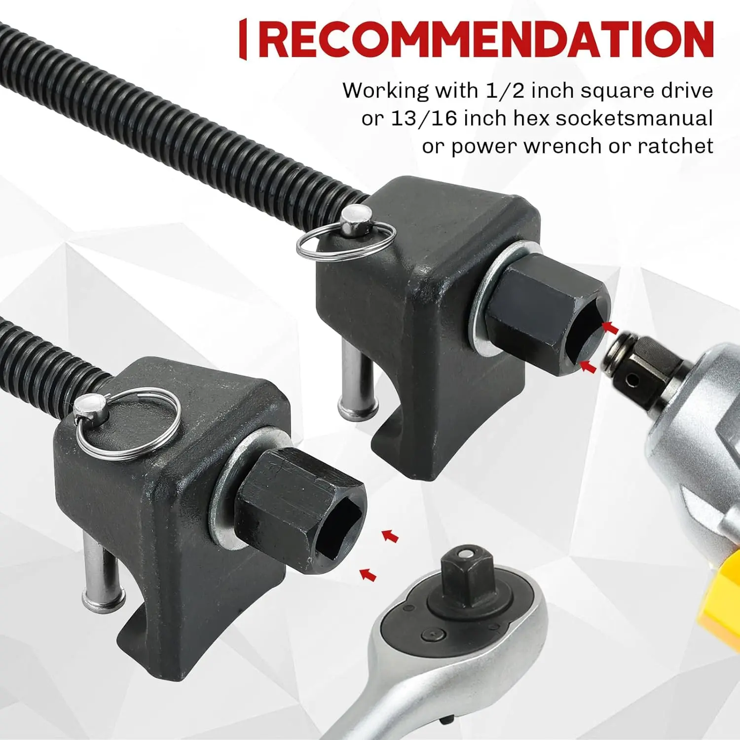 【Efficient and Smooth Compression】 The precision threading and reinforced rods offer , smooth, and compression. Compatible with 13/16" sockets and 1/2" drives, the spring compressor tool provides an extra-wide 11.5-inch range, accommodating various coil springs.