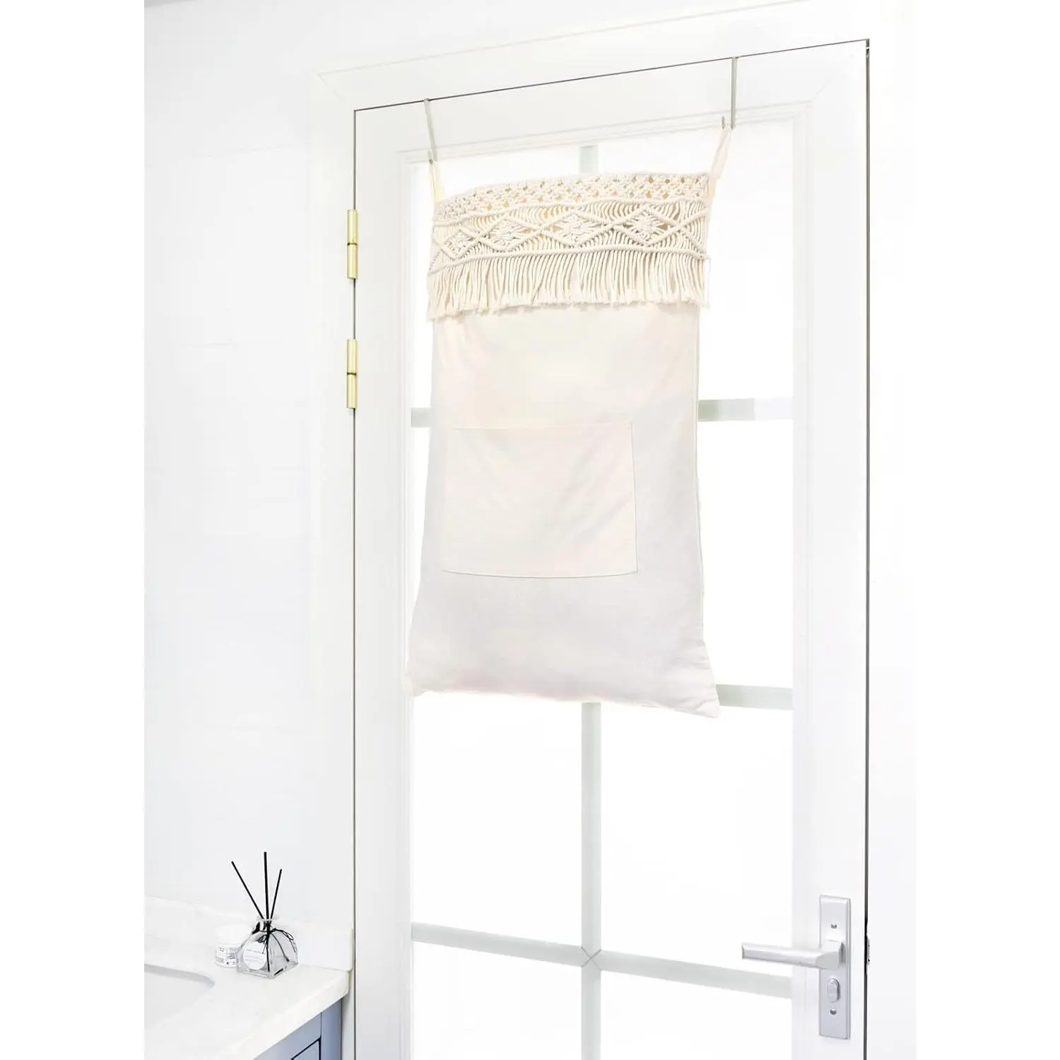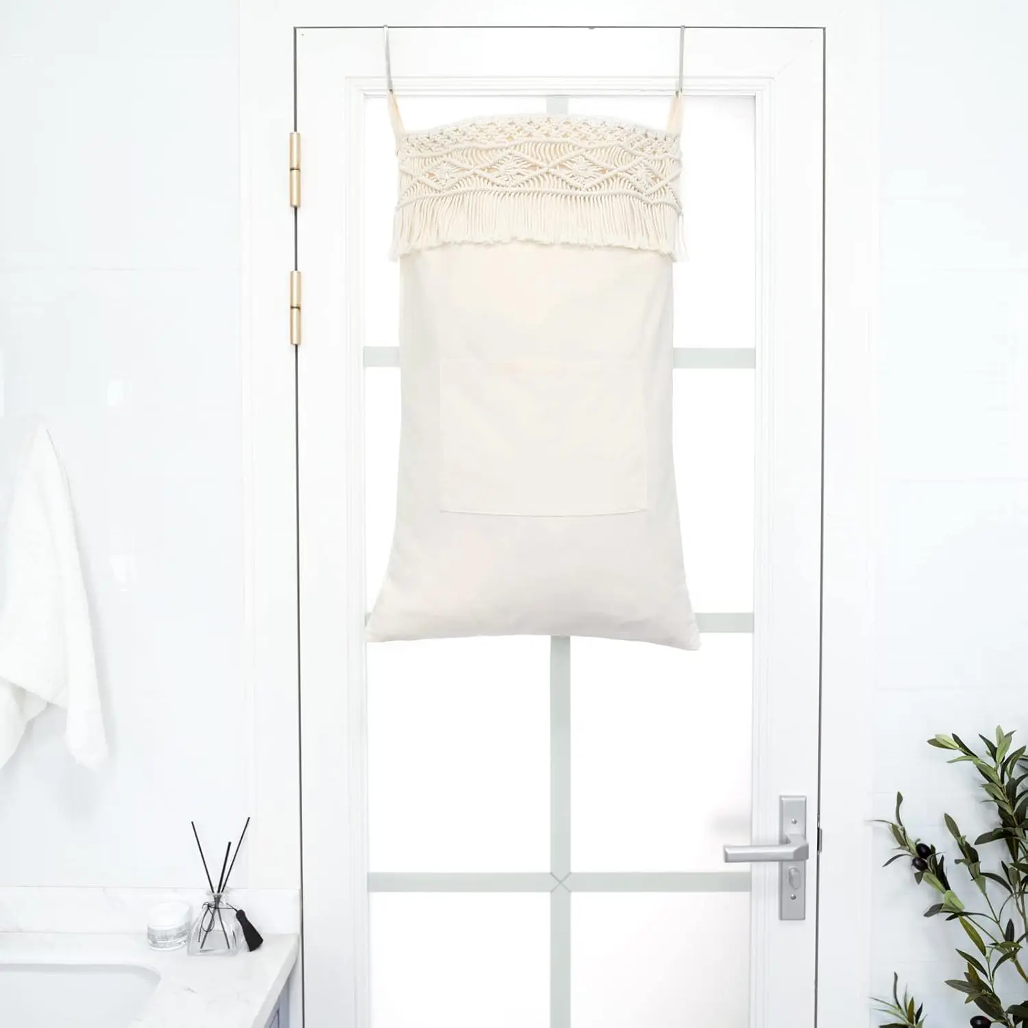 Macrame Hanging Laundry Hamper Bag Over The Door Organizer Laundry Bag Boho Decor Hanging Clothes Hamper for College Dorm Room Bathroom Home Travel Space Saving