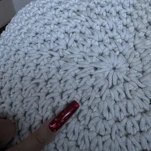 The Macrame Hand-Knitted Ottoman instantly turned this empty corner into the coziest little spot next to my bed #macrameottoman #bohodecorhome #cozycornerdecor #texturedhomevibes #qvc