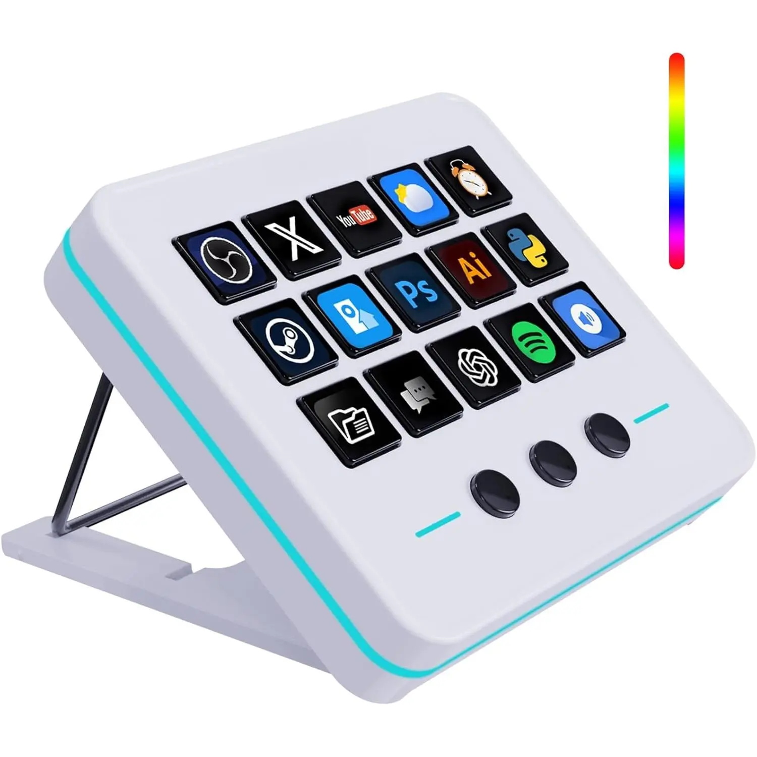 18 Programmable Macro Keypad - The heart of the Streaming Deck lies in its 18 customized macro (15 visual LCD & 3 button). These allowing you to assign individual or a series of actions to streamline your workflow. Whether it's executing combos, launching apps, or controlling media, the possibilities are endless. You can even personalize each LCD key with different images and animations (JPG, PNG, GIF) for recognition and memorization