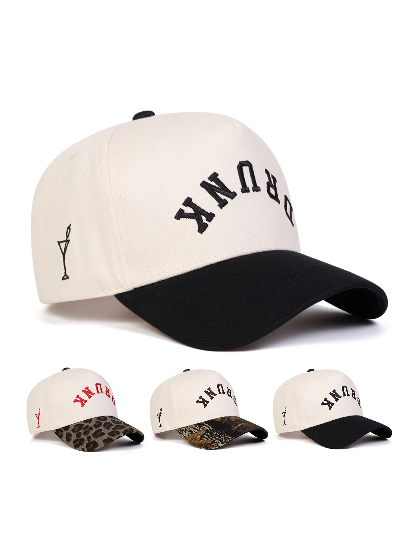 5. Unisex Drunk Letter Embroidered Baseball Cap, Adjustable Outdoor Sun Protection Hat, Casual Fitted Woven Fabric for Spring & Fall, Adjustable Sunscreen Hat