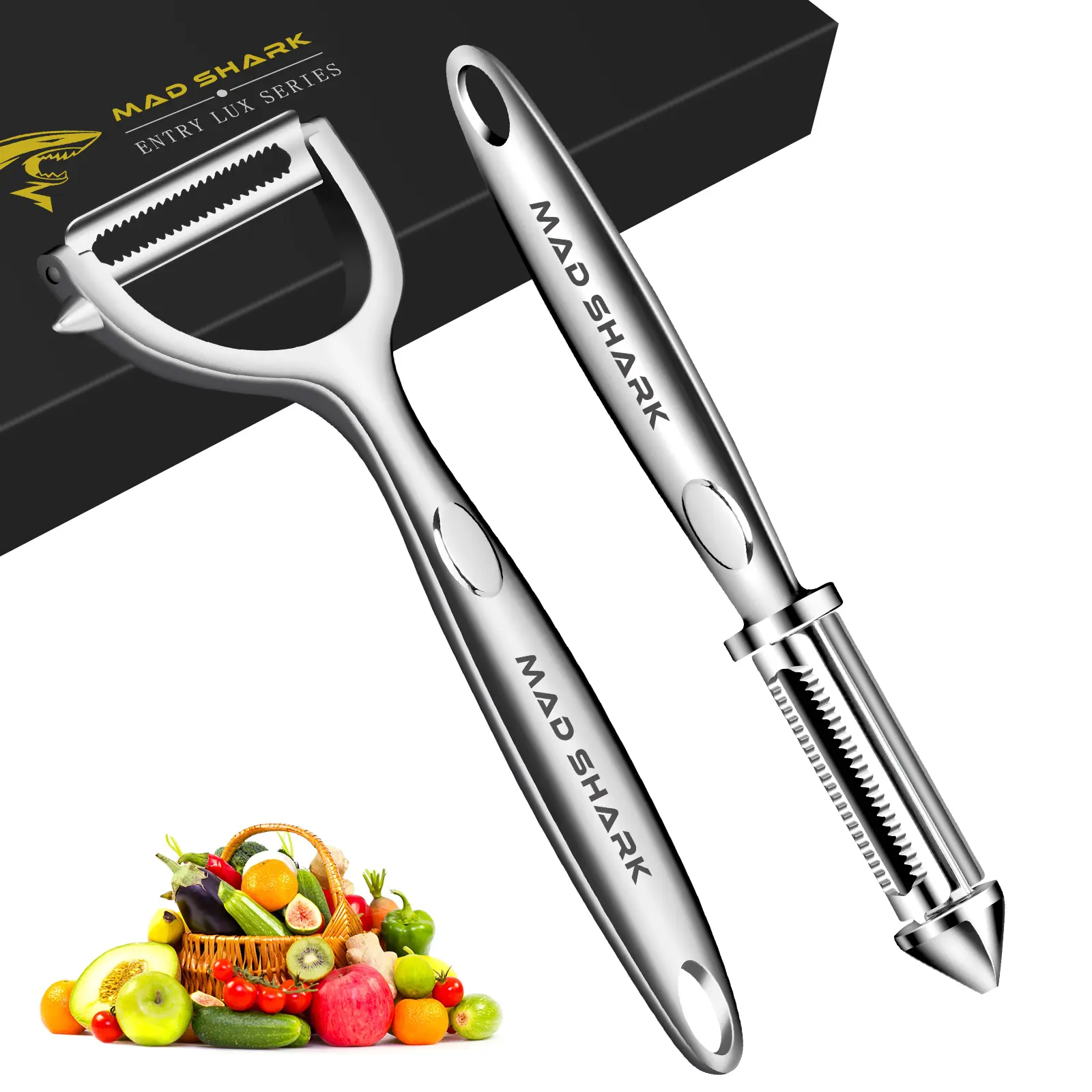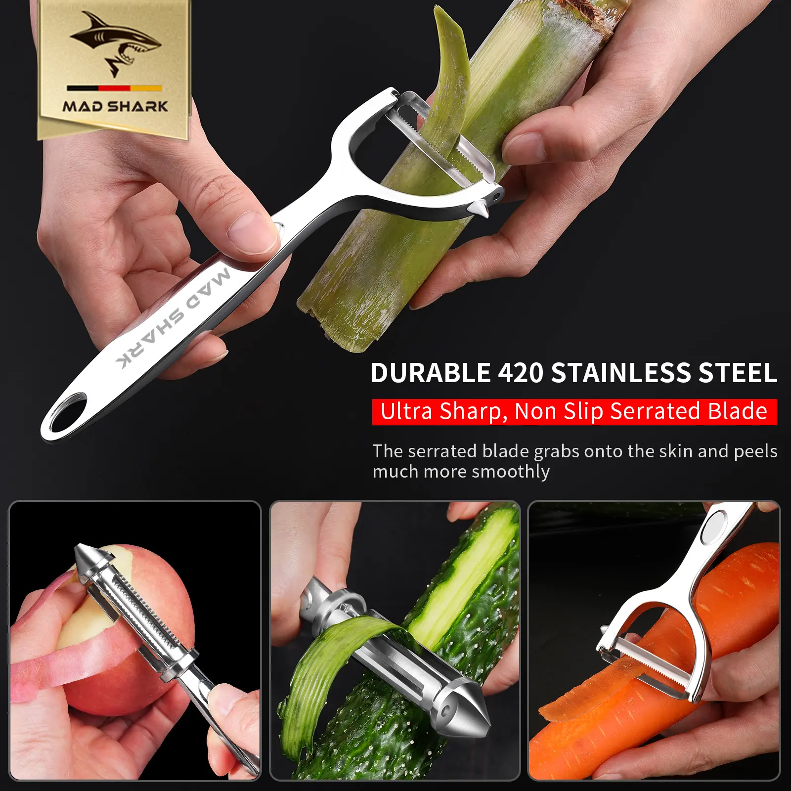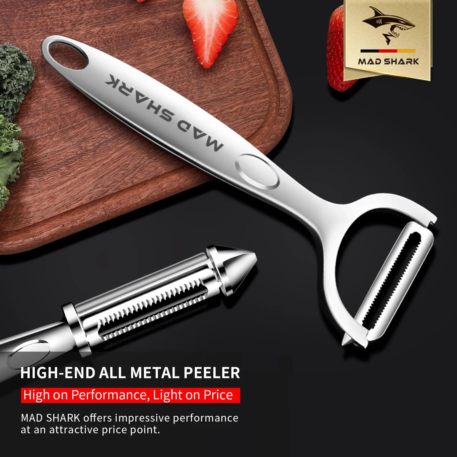 MAD SHARK Stainless Steel Peeler for Fruits, Vegetables, and Potatoes – Multi-Purpose Skin Remover for Apple, Melon, Carrot, and More – Must-Have Kitchen Tool for Home Cooking – Effortless Peeling with Sharp Blade – Ideal for Quick Prep and Easy Clean-Up