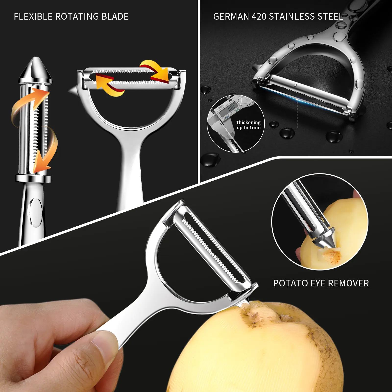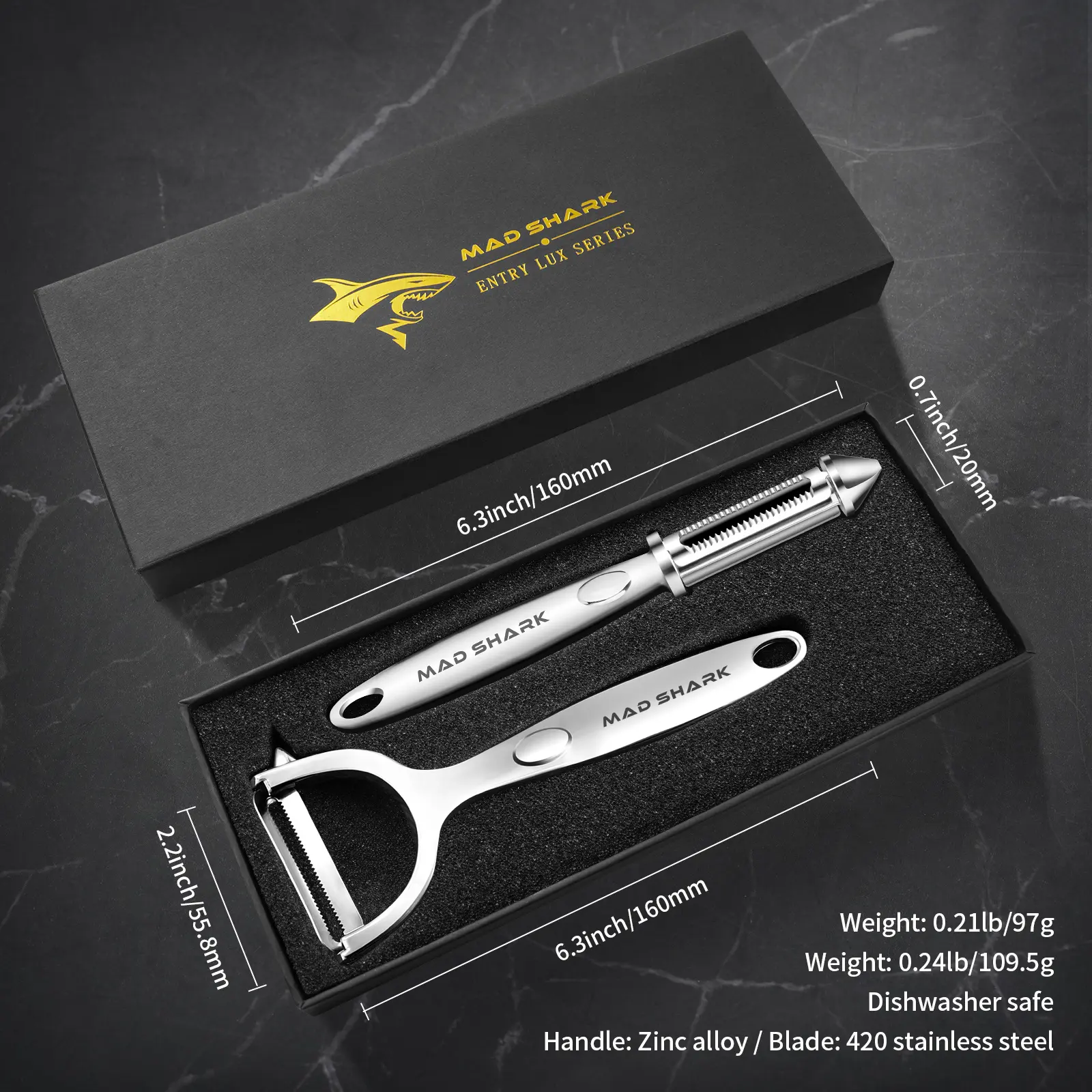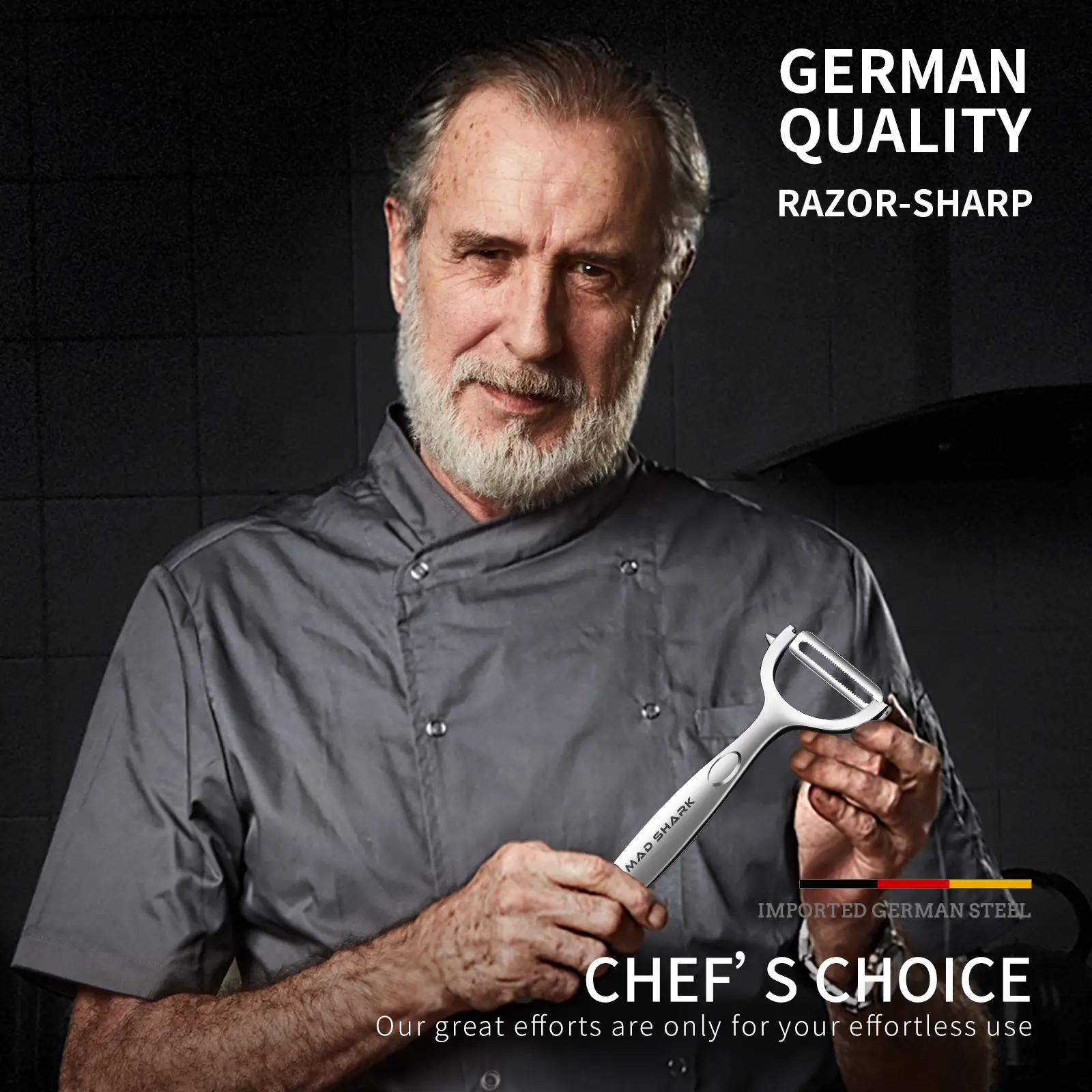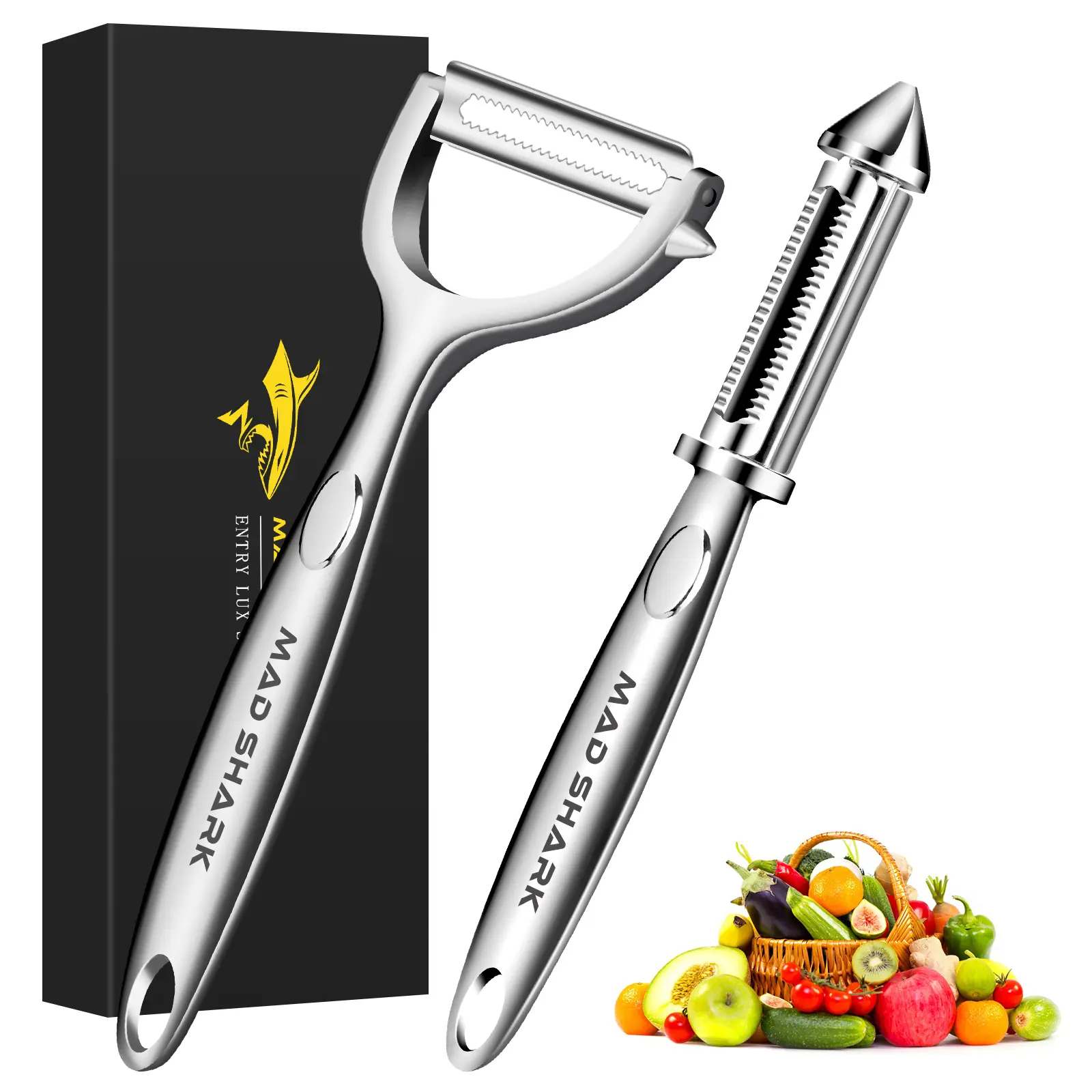 MAD SHARK Stainless Steel Peeler for Fruits, Vegetables, and Potatoes – Multi-Purpose Skin Remover for Apple, Melon, Carrot, and More – Must-Have Kitchen Tool for Home Cooking – Effortless Peeling with Sharp Blade – Ideal for Quick Prep and Easy Clean-Up